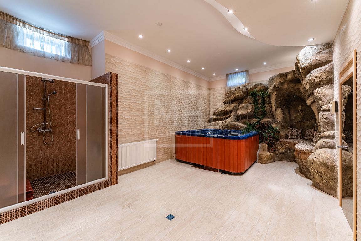 Цоколь: распложены холл, бильярдная, тренажерный зал, винная комната, сауна, душ, джакузи, с/у, кладовая, постирочная