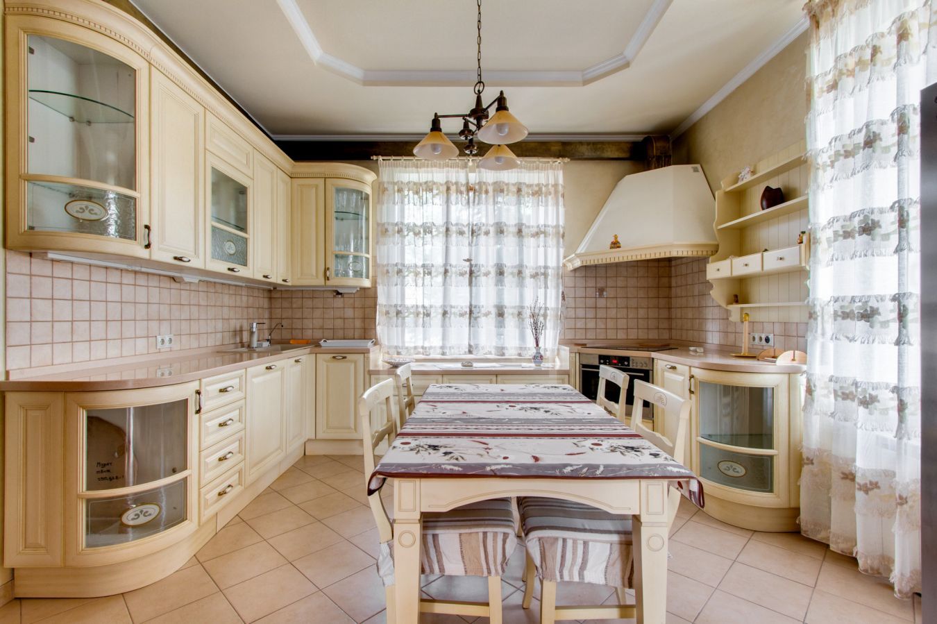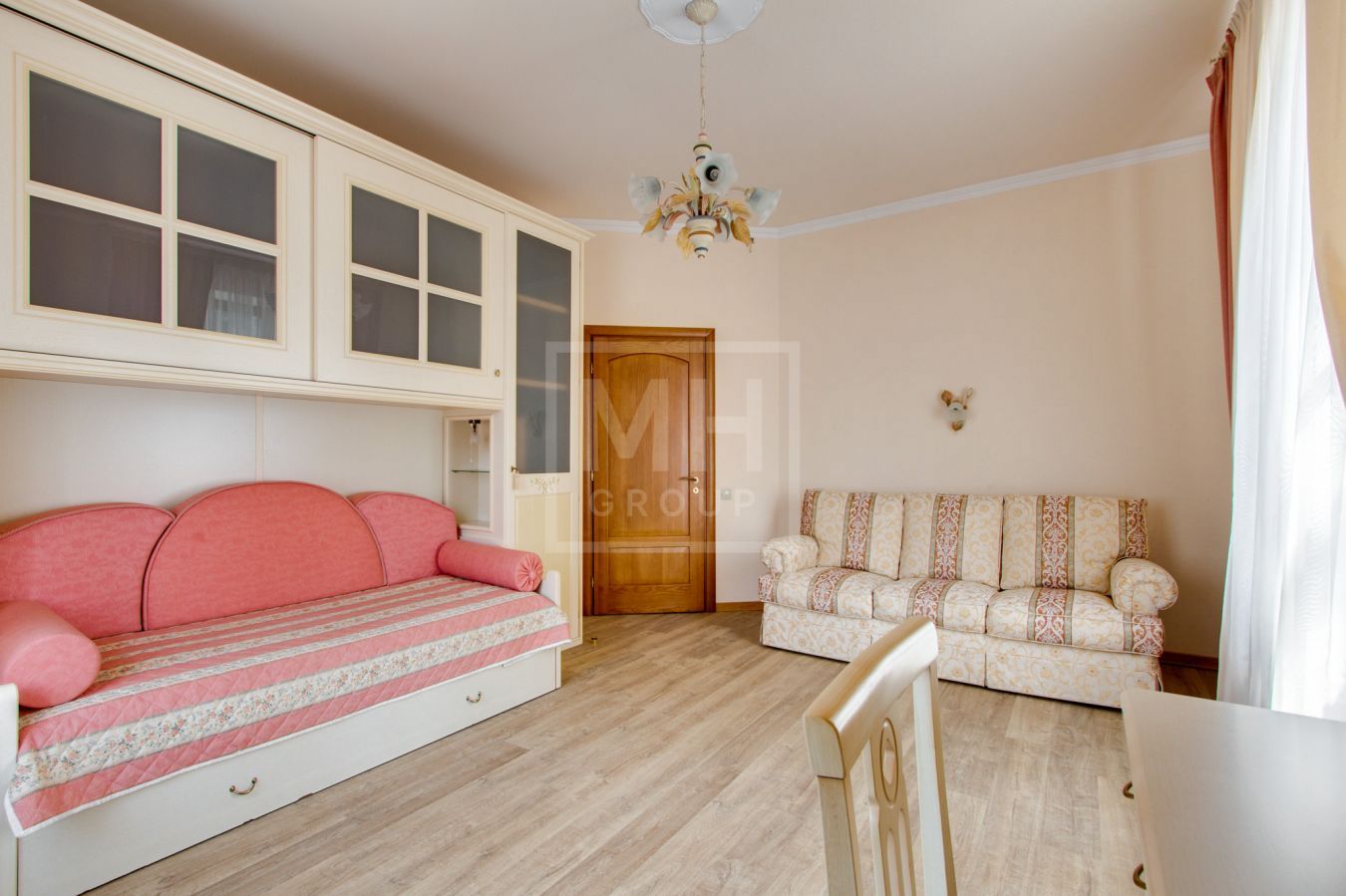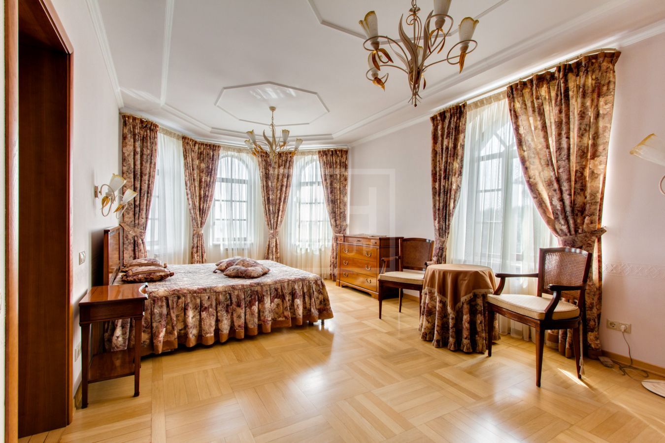 Коттедж в классическом стиле в жилом поселке 'Нива' между Рублевским и Новорижским шоссе. Дорогой ландшафт, внутренняя отделка, лифт, бассейн, отдельно стоящий дом для персонала.Отделка: использовались только высококачественные материалы ( наружная отделка - рваный камень, штукатурка) Мебель: Италия, Австрия.