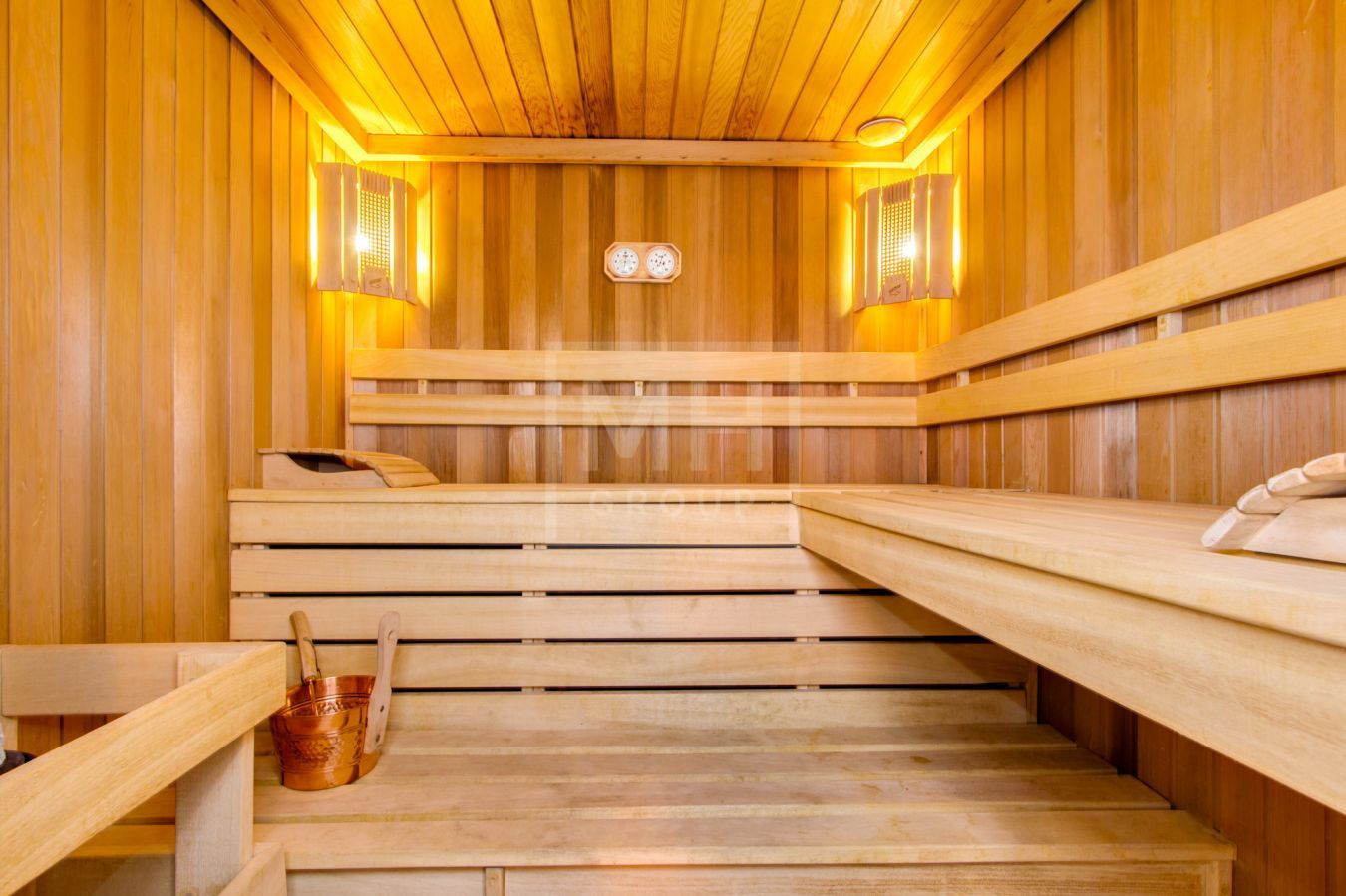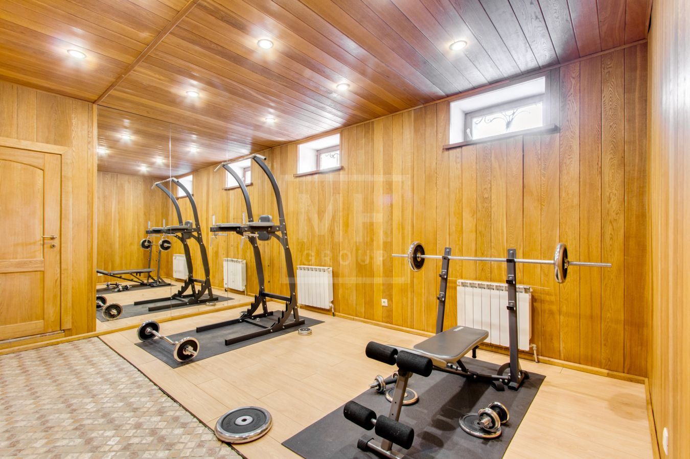 Цоколь: 150кв.м., сауна с душевой и комнатой отдыха, спортивный зал с выходом к бассейну, бар, бойлерная(с выходом на участок), постирочная, санузел, гараж на 2 автомобиля.