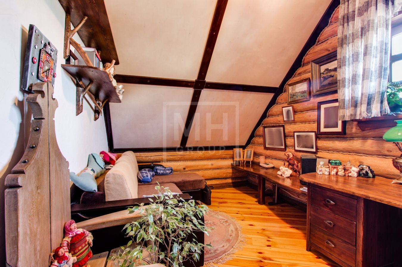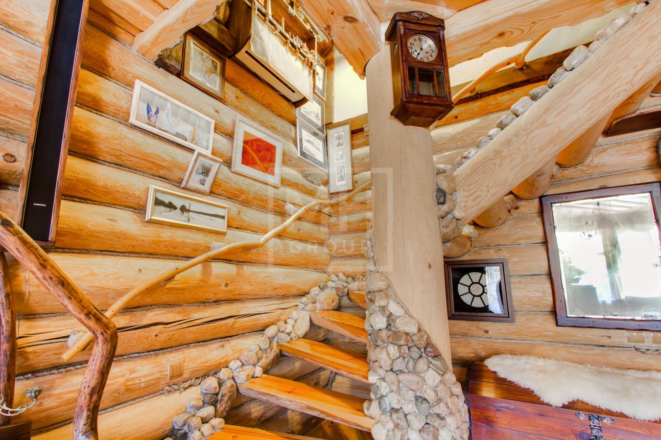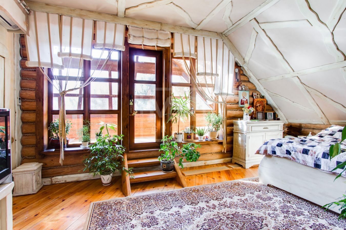 Рублево-Успенское шоссе 17 км.от МКАД, в районе Солослово, посёлок "Пруды". Дом (рубленное бревно Муром) - 3 спальни, 3 с\уз, сауна, кухня-столовая, гостиная, кабинет, зимний сад с камином, лоджия, мансарда, гараж на 2