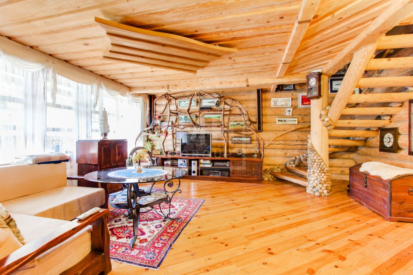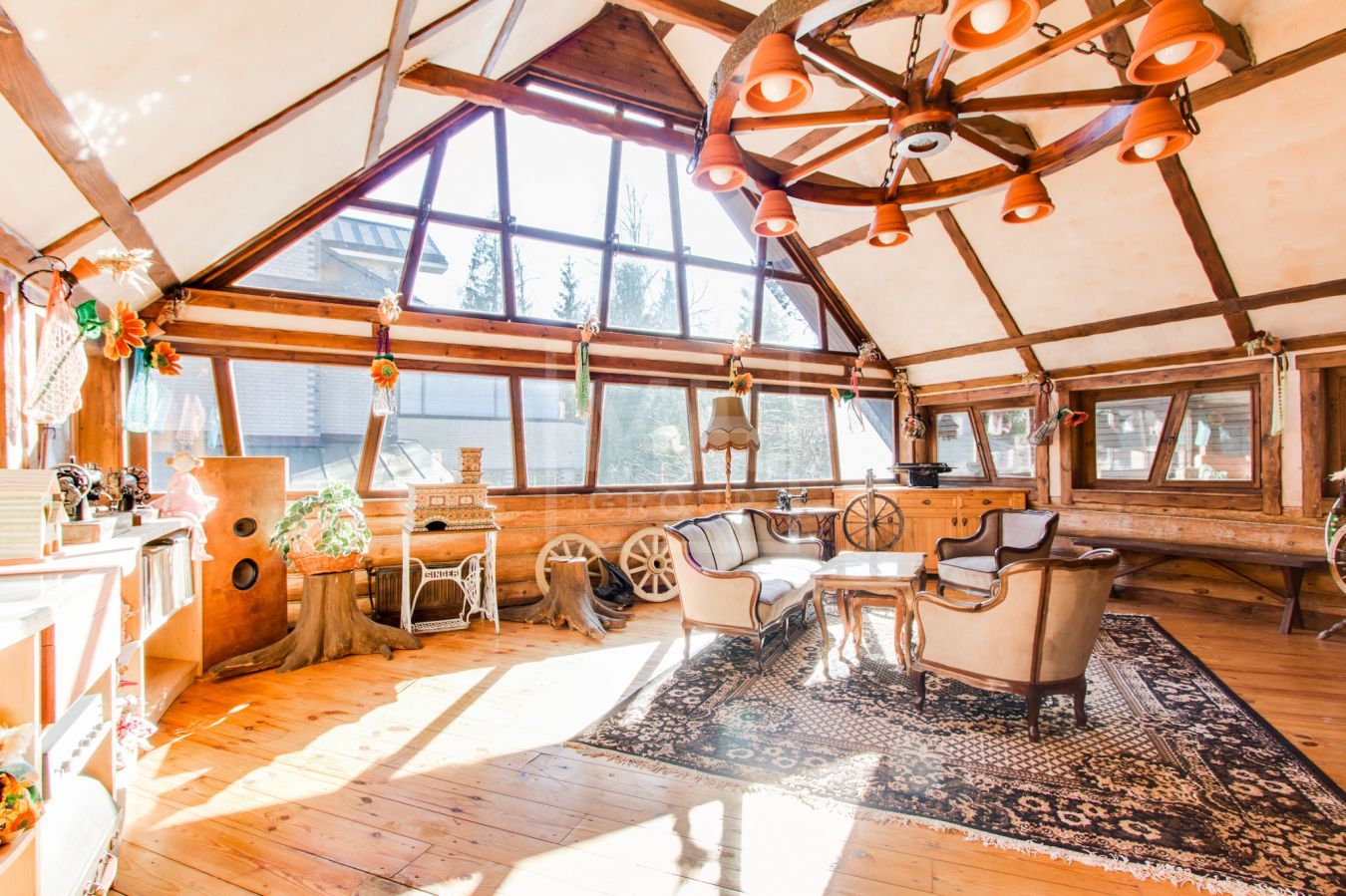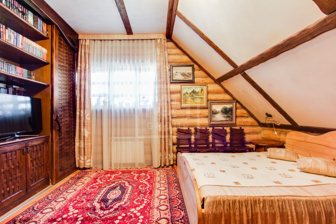 Рублево-Успенское шоссе 17 км.от МКАД, в районе Солослово, посёлок "Пруды". Дом (рубленное бревно Муром) - 3 спальни, 3 с\уз, сауна, кухня-столовая, гостиная, кабинет, зимний сад с камином, лоджия, мансарда, гараж на 2