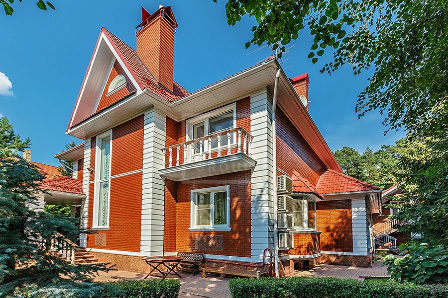 Великолепный дом с отделкой из самых дорогих материалов в полностью жилом поселке, в самом сердце Жуковки. Продуманная планировка.Гараж на 3 машины отдельное строение, над ним квартира для персонала.