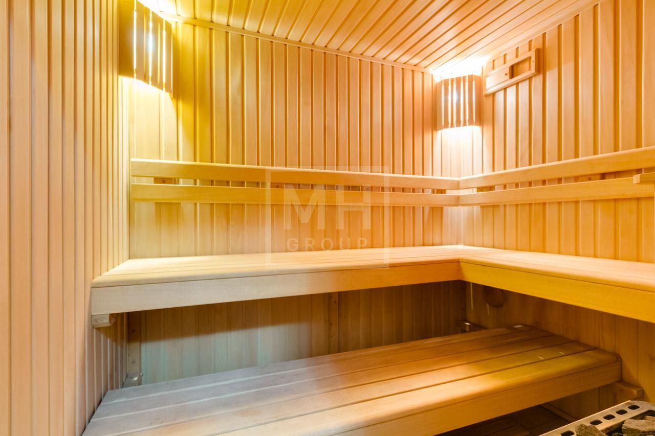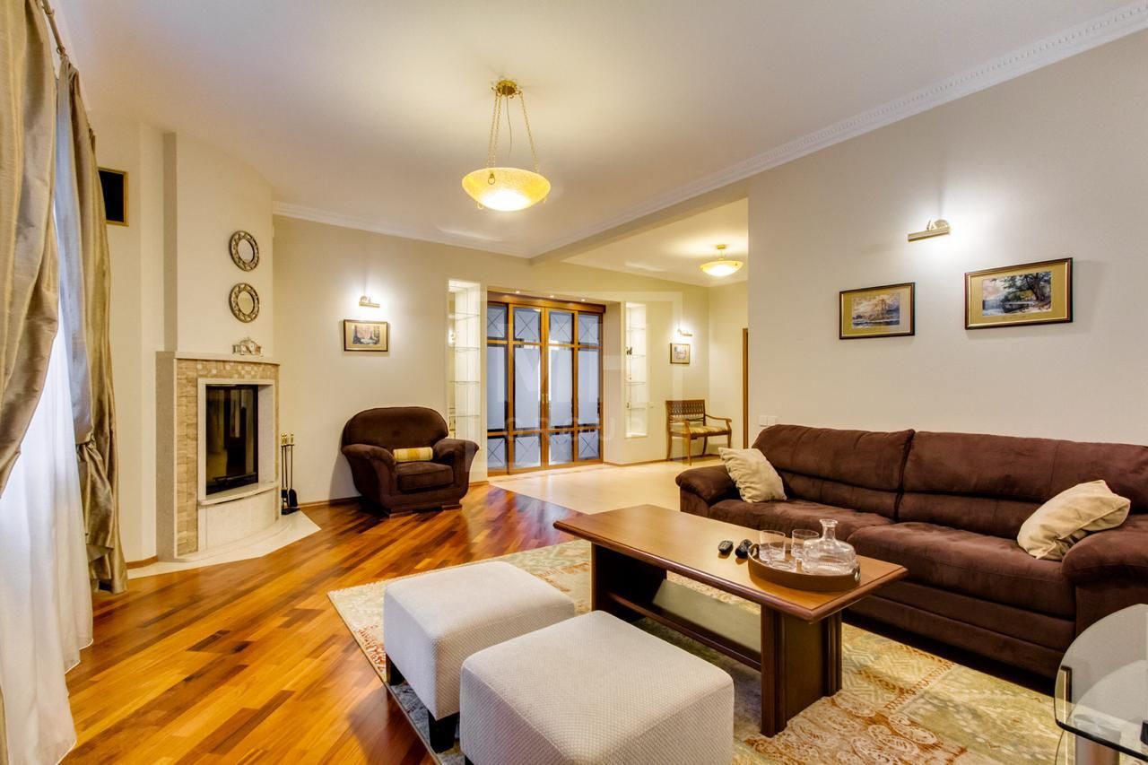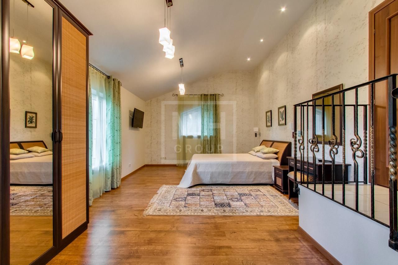 3 спальни, 4 санузла, кухня-столовая, каминный зал, сауна, теплый гараж, веранда.