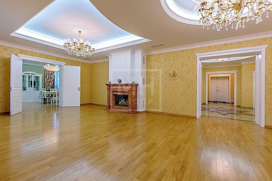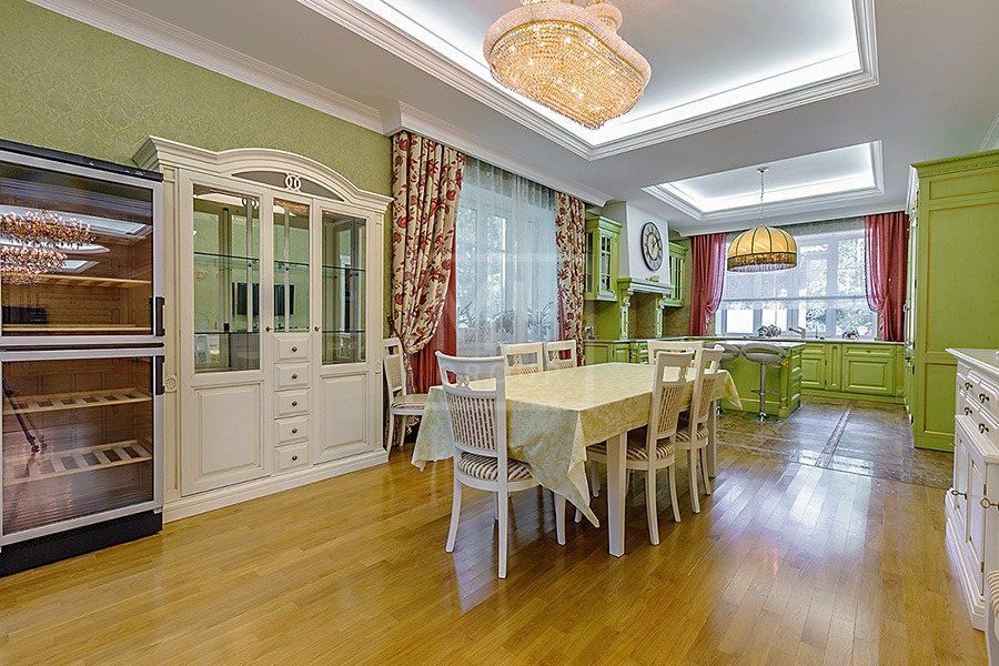 Уютная загородная резиденция построена на территории хвойного леса.Дизайн интерьера выполнен в классическом стиле.