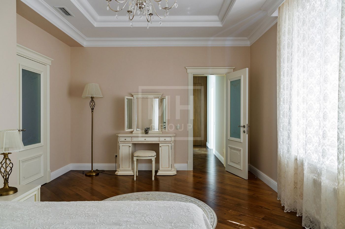 На втором этаже располагается мастер спальня с гардеробной и ванной комнатой, кабинет, спальня с ванной комнатой и будуарной.