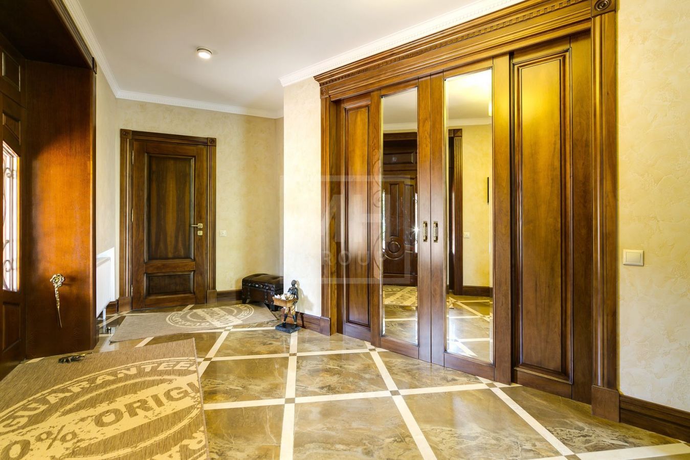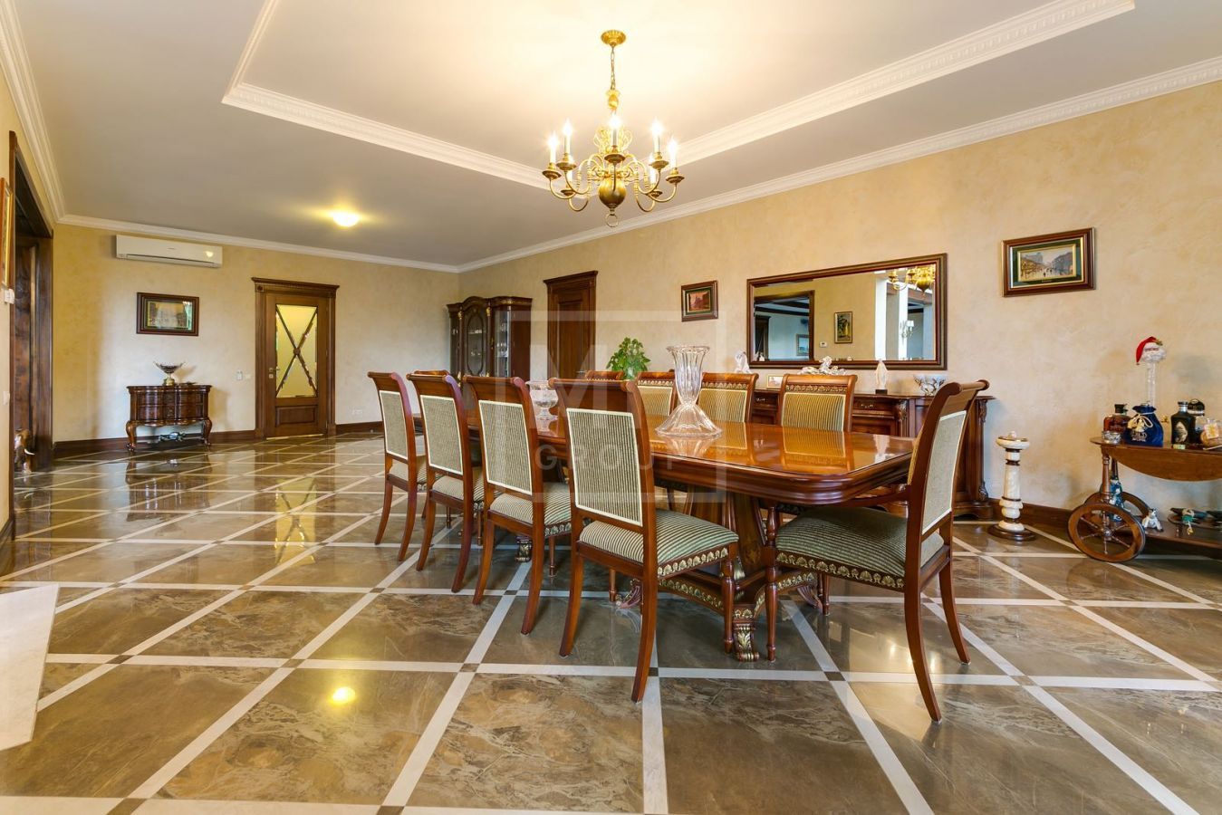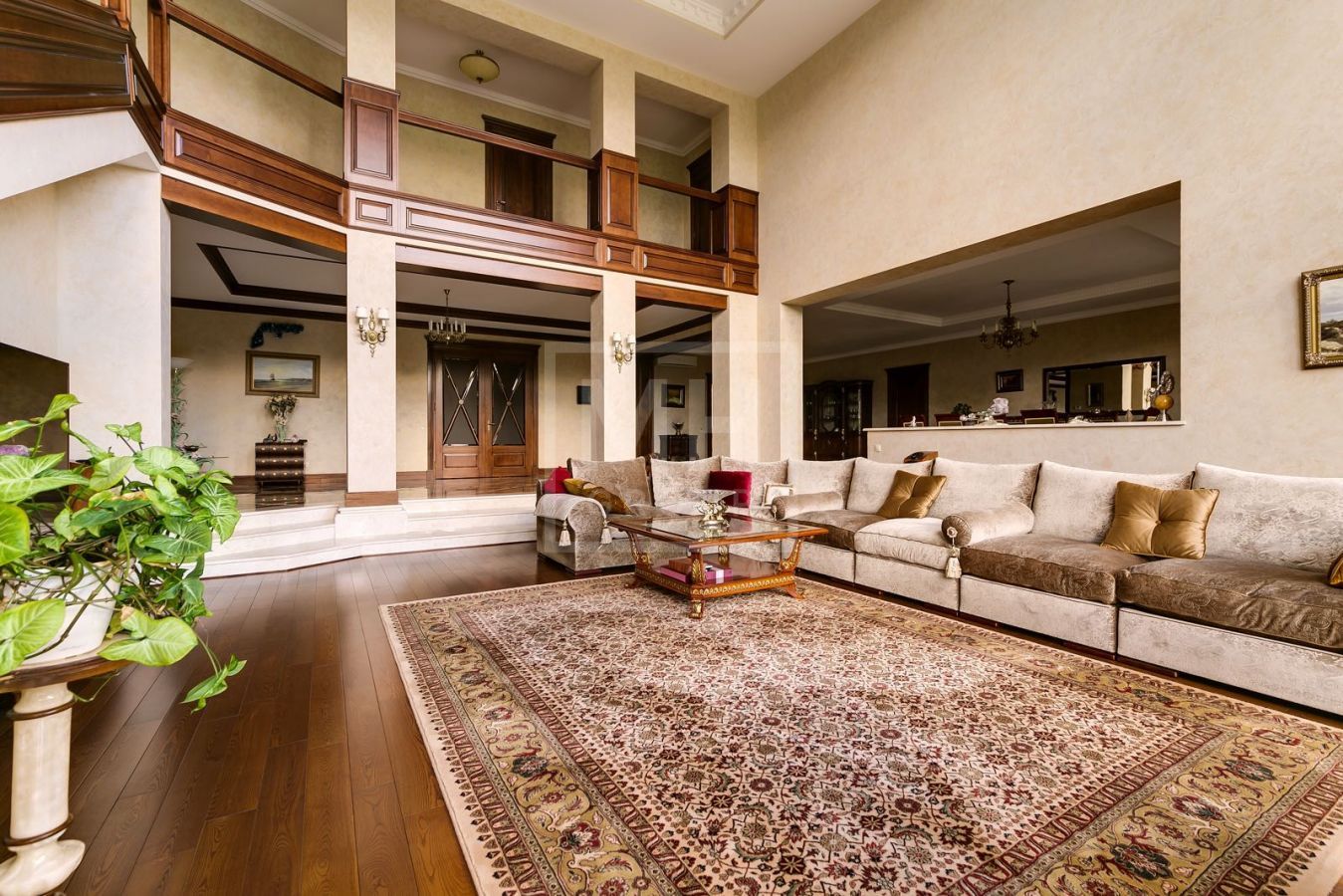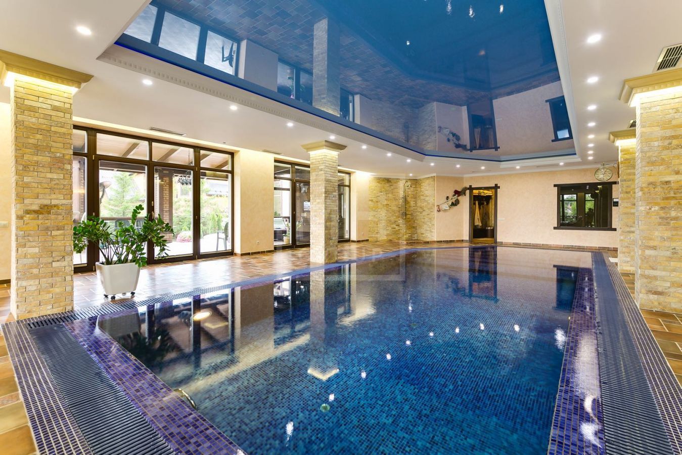 Этаж 1: Гардеробная, с/у, кухня, гостиный зал со вторым светом, зона спа: душевая, с/у, хамам, сауна, бассейн 11м с выходом на просторную веранду, столовая, кабинет, с/у, 2 гостевые с с/у и гардеробными, хозяйская спальня с с/у и гардеробная. Хозяйский блок: 1 этаж: спальня с гардеробной, с/у, гардеробная, с/у, гостевая студия с верандой, гараж на 3 м/м, холодная комната; 2 этаж: кухня, комната, с/у.