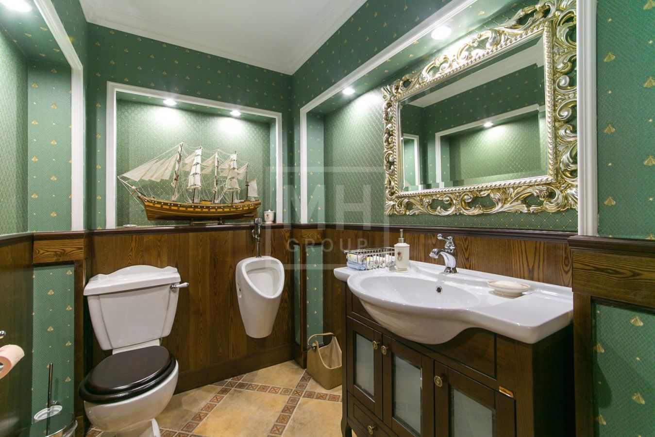 Цоколь: кухня-гостиная с выходом на террасу, су, комната свободного назначения (оружейная), бильярдная, гардеробная, кинотеатр (место отдыха), гладильная, котельная с водоочисткой, зона техническая бассейна