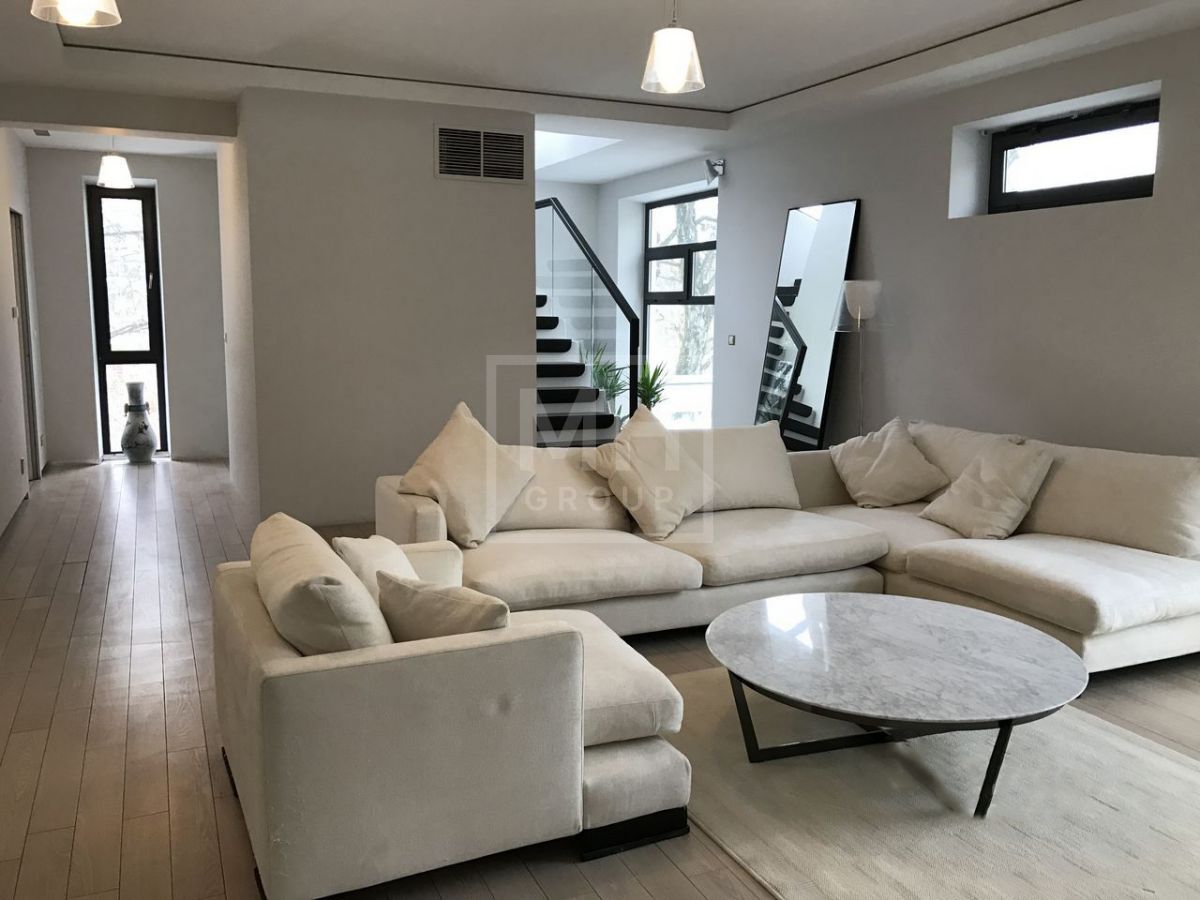 Шикарный современный дом 1150 кв.м., расположенный на благоустроенном участке 30 соток с прекрасным ландшафтным дизайном и протекающим ручьем.Дом полностью меблирован дизайнерской мебелью иностранных производителей, имеет роскошный бассейн и парковку на 5 автомобилей.