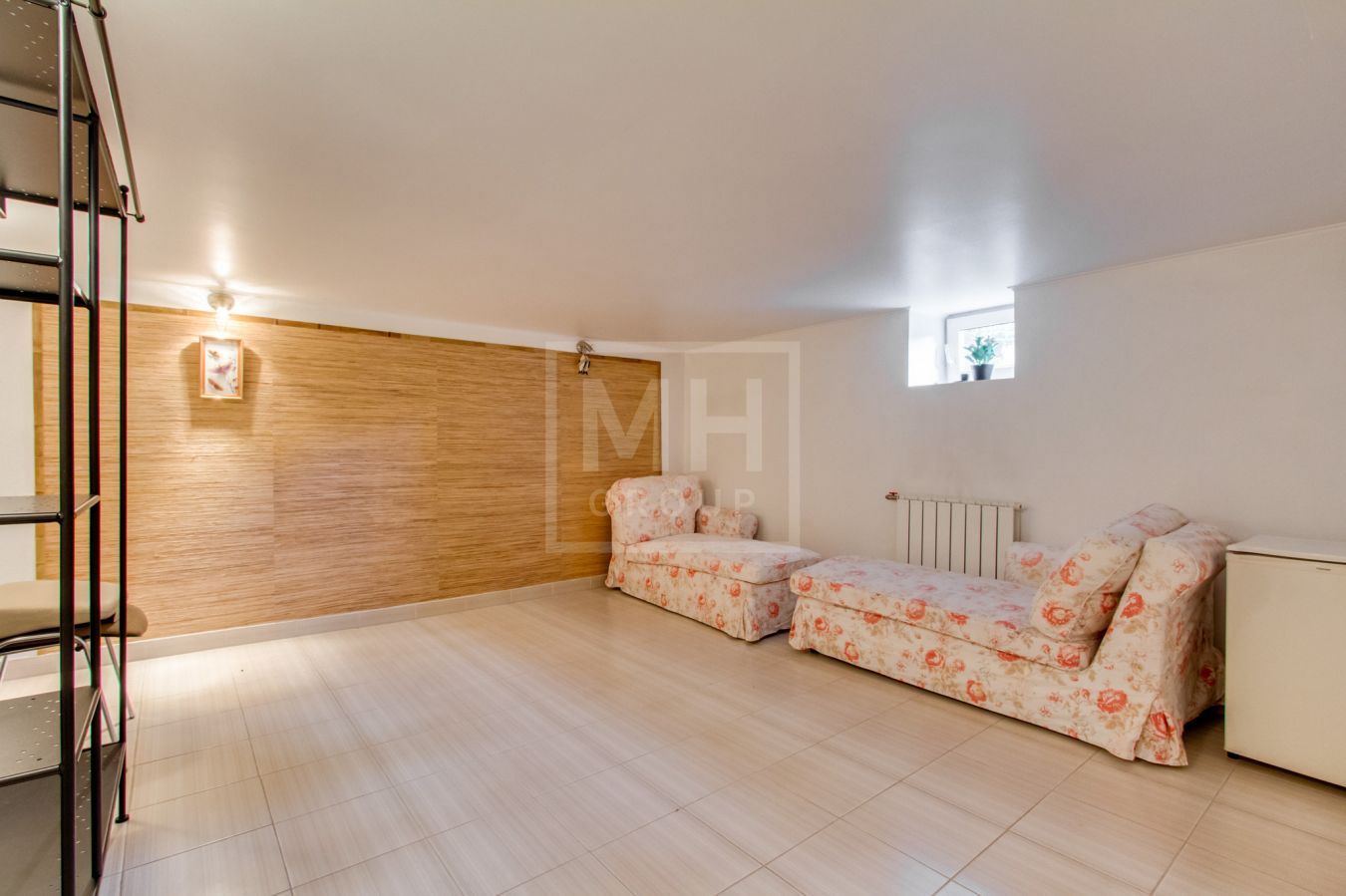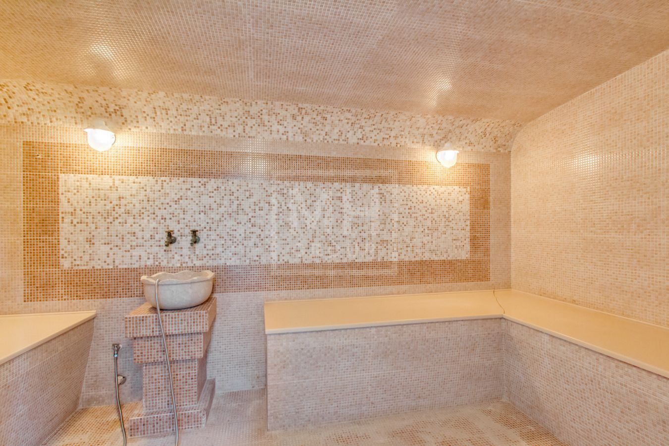 Этаж 1: крыльцо, прихожая, коридор-холл-лестничный марш, с/у 1-го этажа, проходная кухня-столовая, библиотека с камином, гостиная с подиумом с выходом на веранду и входом в SPA-зону, находящуюся в цокольном этаже (хамам, душевые, ванная, с/у, массажная комната)