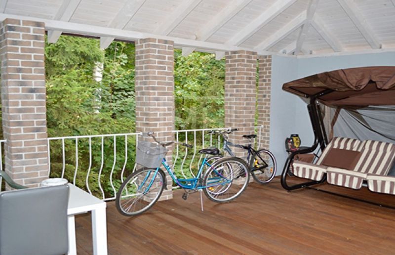 Участок с выходом в лес и красивыми лесными деревьями. Перепад высот который начинается сразу за участком, создает великолепный вид с террасы, приватно расположенной на скрытой от посторонних глаз стороне дома.
