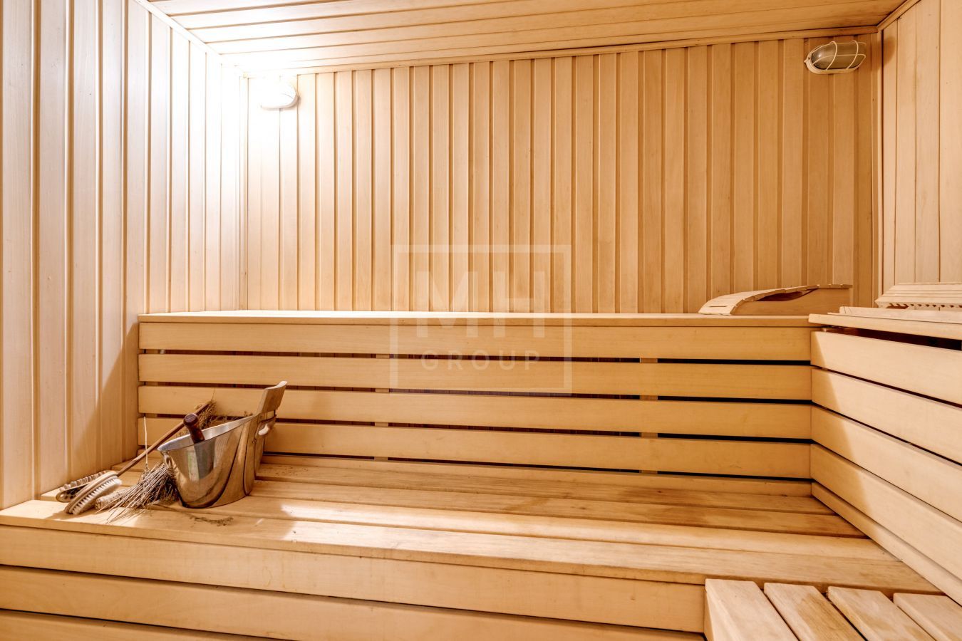 Этаж 2: 3 спальни с гардеробными комнатами, 2 с/у и ванные комнаты, сауна.