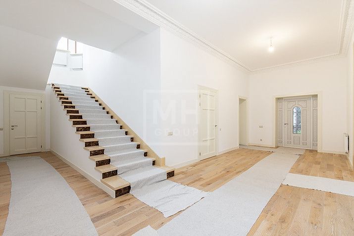 Этаж 1: холл, кухня-столовая, гостиная, кабинет, гардеробная, санузел, две спальни со своими с/у. и гардеробные.