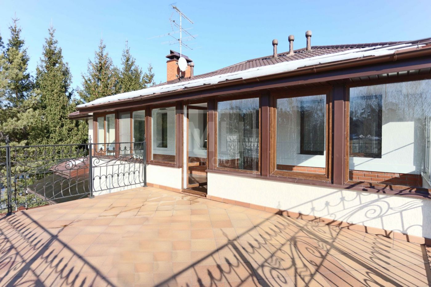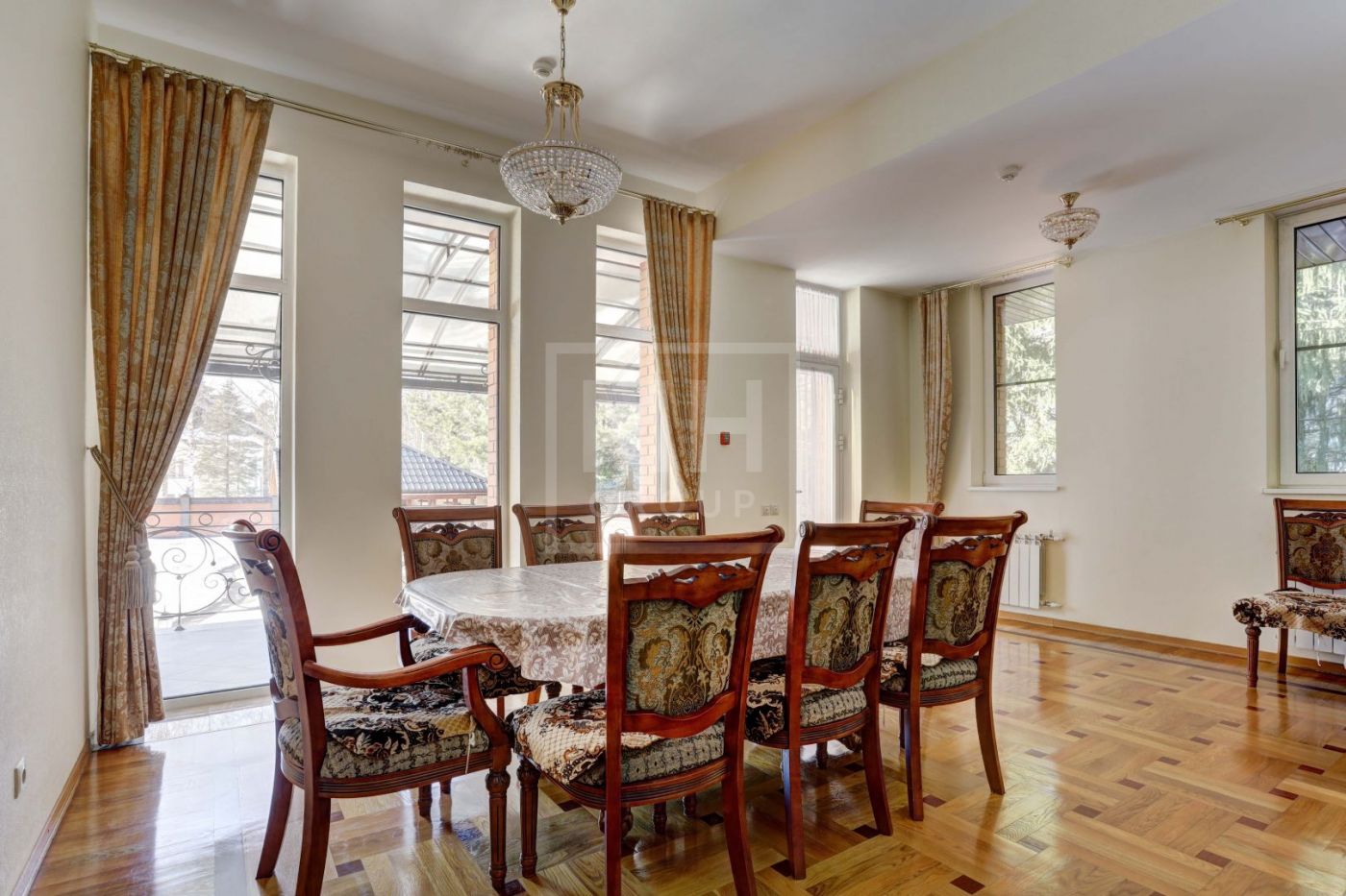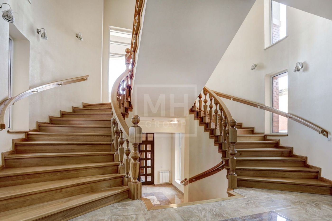 Коттедж в итальянском стиле на ухоженном участке с ландшафтным дизайном. Дом состоит из двух блоков: основной дом и гостевой дом соединенные галереей. Интерьеры выдержаны в классическом стиле.