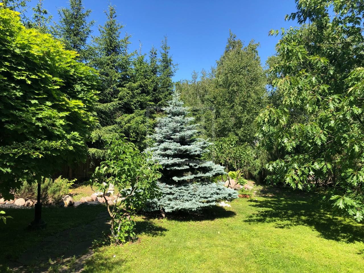 Красивый участок, площадью 30 сотки, имеет ландшафтное оформление.На нем высажены плодовые деревья, различные виды хвойных и лиственных пород, установлено освещение.