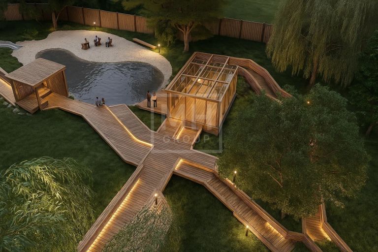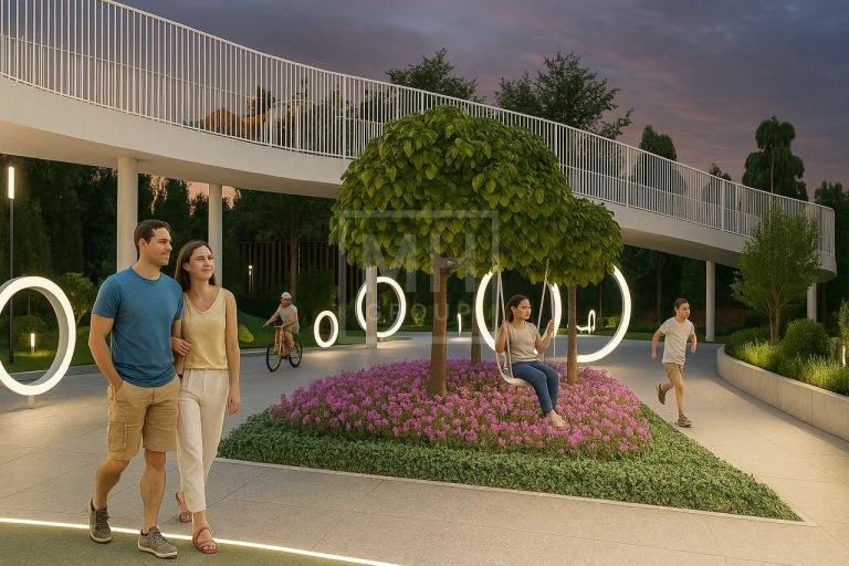 Здесь есть всё, что нужно для семьи: детский сад, зоны отдыха, спортивные площадки, кафе, парки, прогулочные аллеи и живописный пруд.