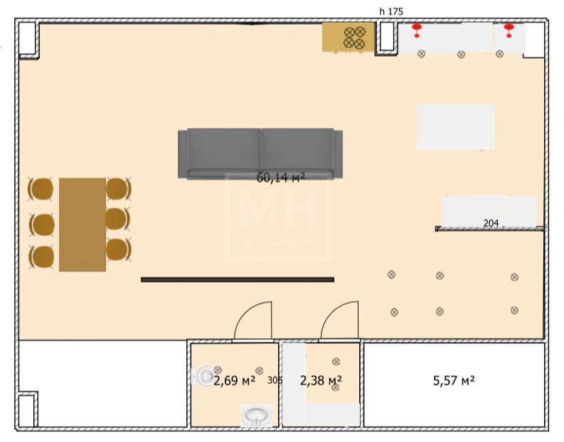 Этаж 1: гостиная, кухня, гардеробная, с/у, выход на участок с зоной патио.