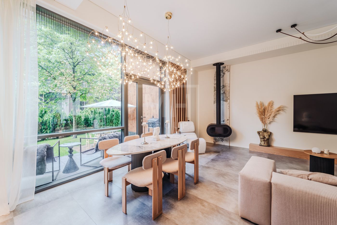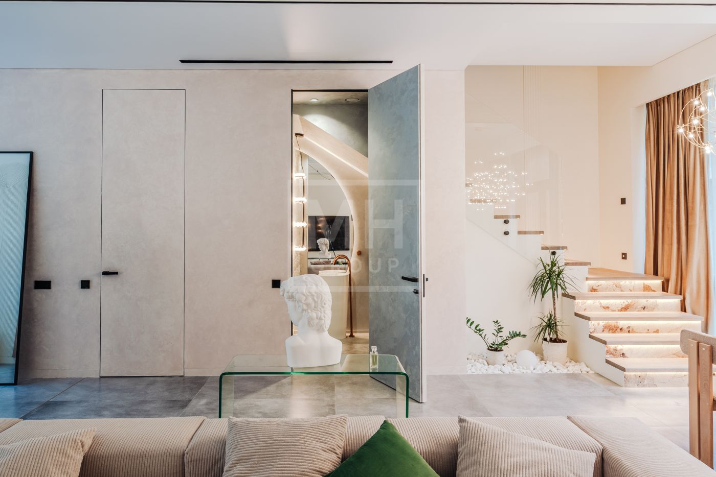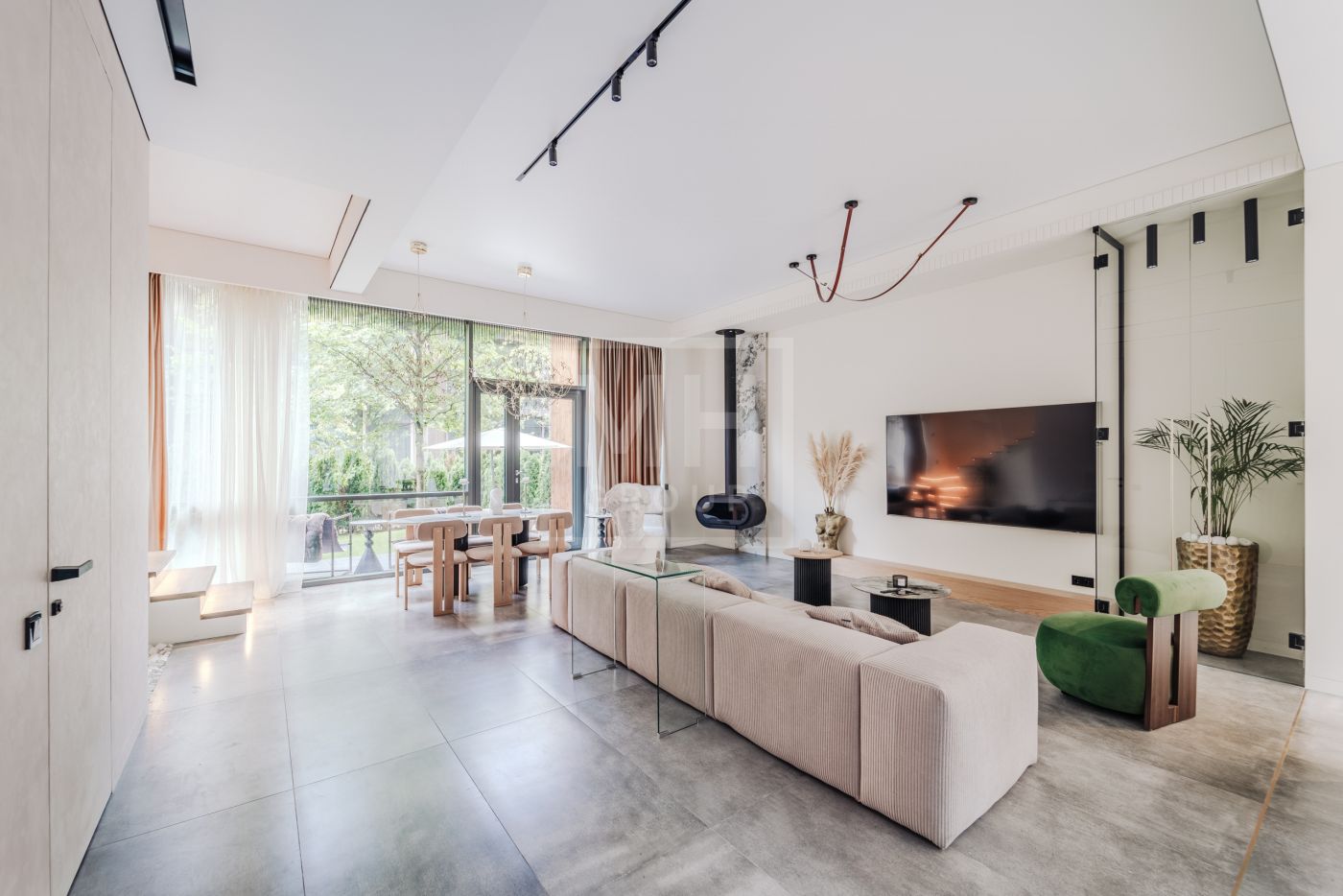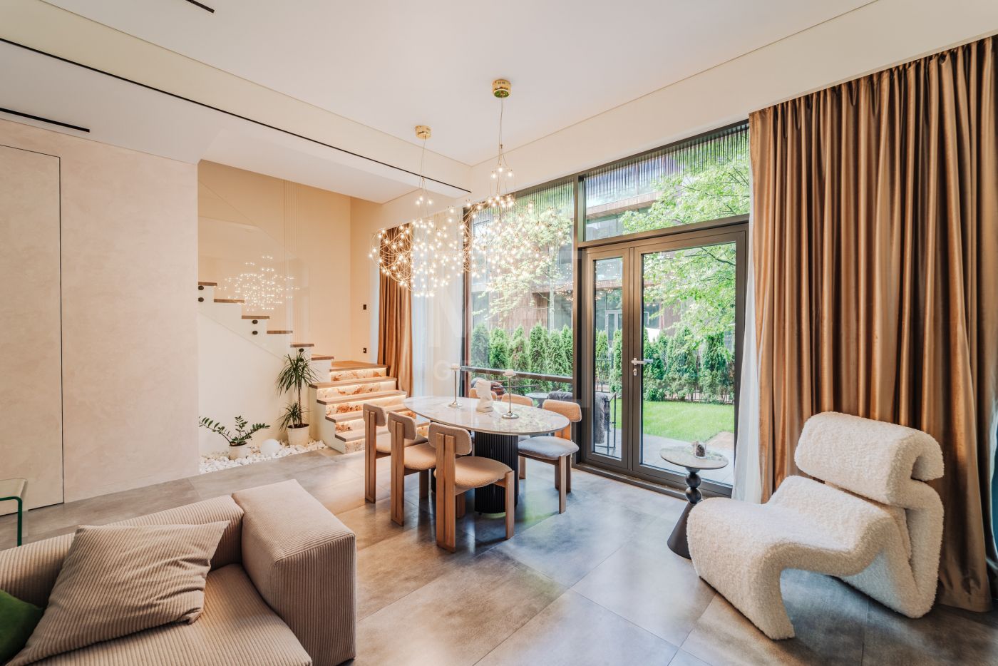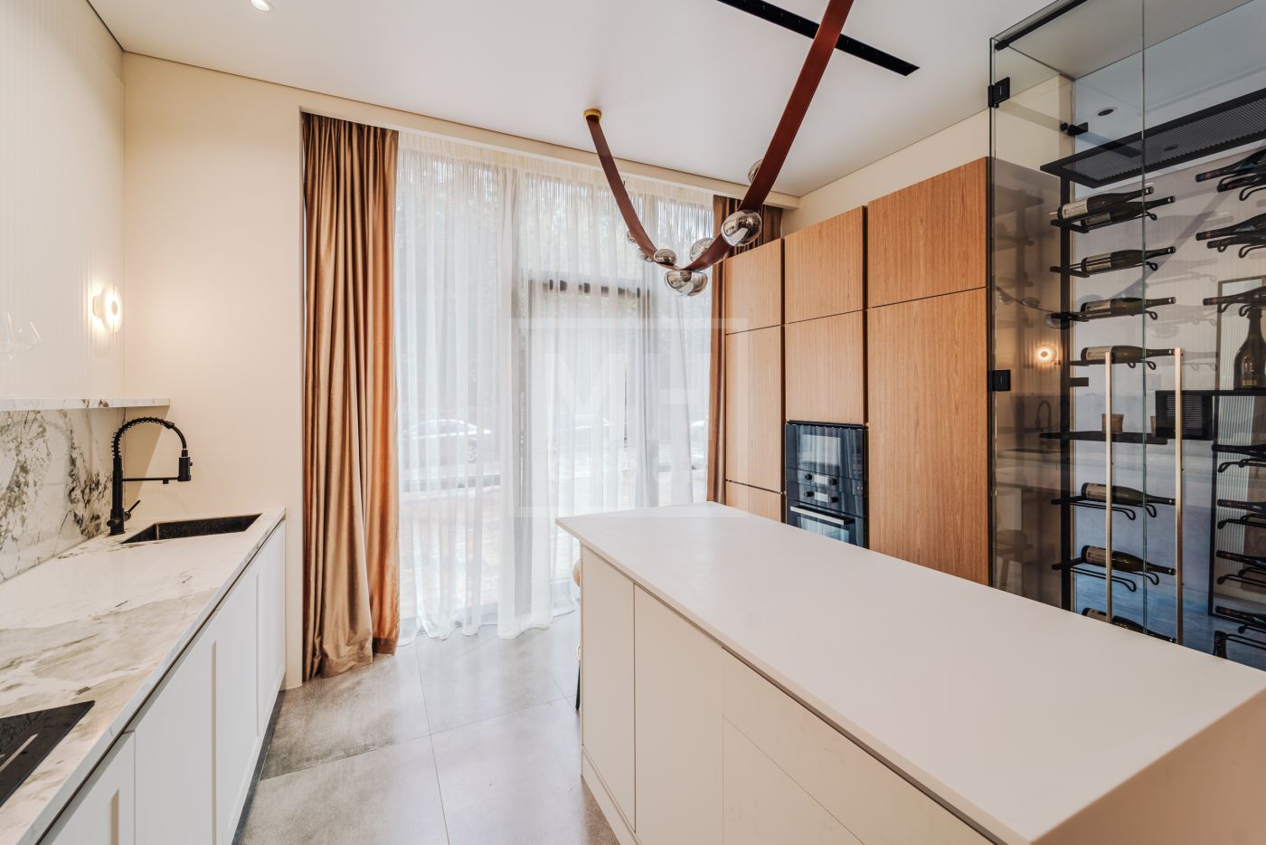 Современный, красивый таунхаус в Футуро Парк, площадью 240 м². При отделке использовались премиальные материалы: техника Kuppersbusch, паркет, итальянский керамогранит. Канальное кондиционирование, конвекторы, теплые полы. На территории Futuro Park в августе запускают уникальный проект - бассейн под открытым небом. Планируется открытие фитнес центра с крытым бассейном, детского сада, магазинов, кафе. Клубная система Villagio Estate дает возможность пользоваться инфраструктурой всех близлежащих поселков Villagio Estate. Лучшее расположение в посёлке, соседи только со стороны сада, с другой стороны граничит с поселком Agalarov Estate.