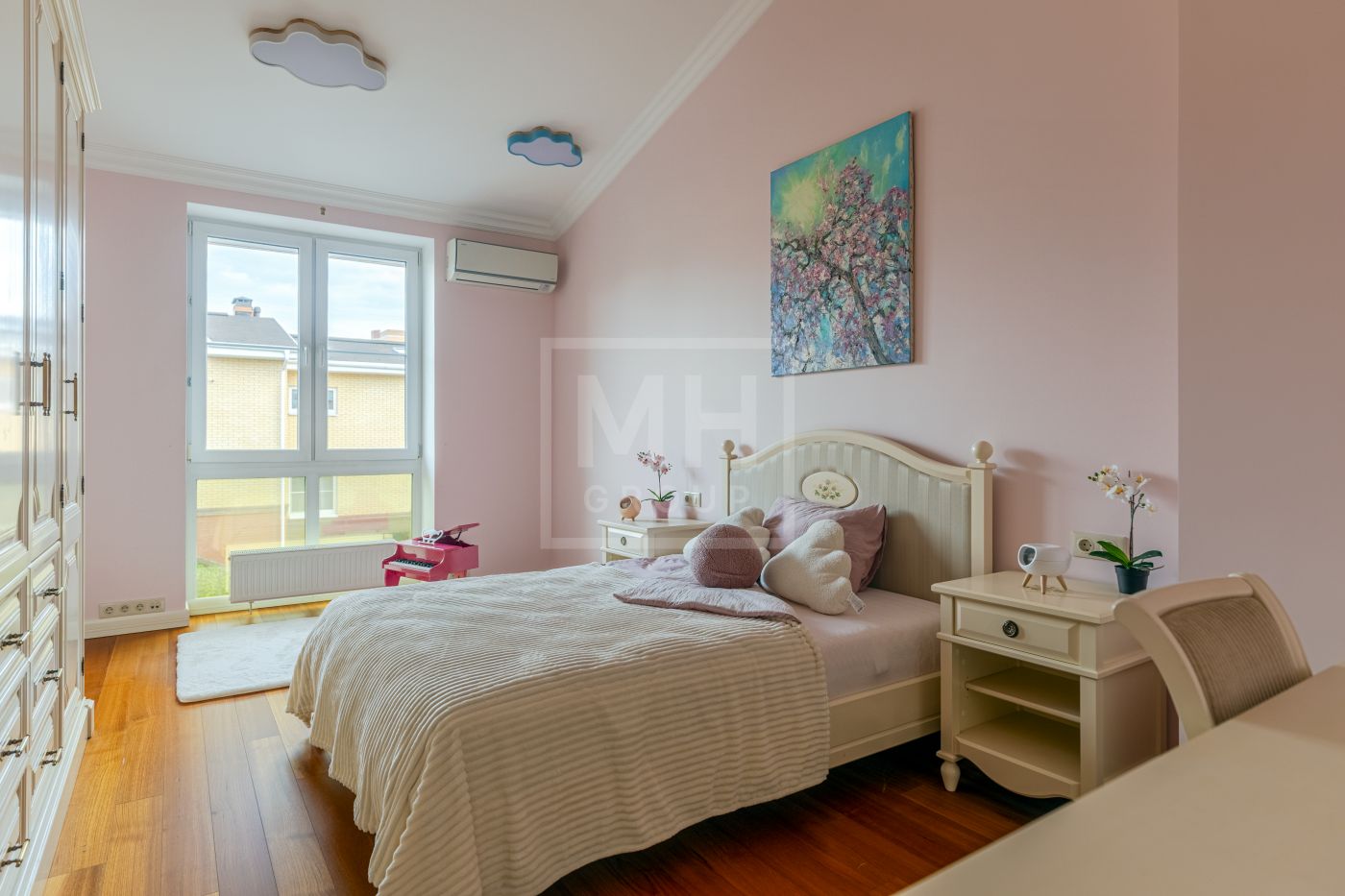 Просторный мастер-блок имеет свою индивидуальную гардеробную комнату и санузел с ванной, у двух детских спален, санузлы на этажах.