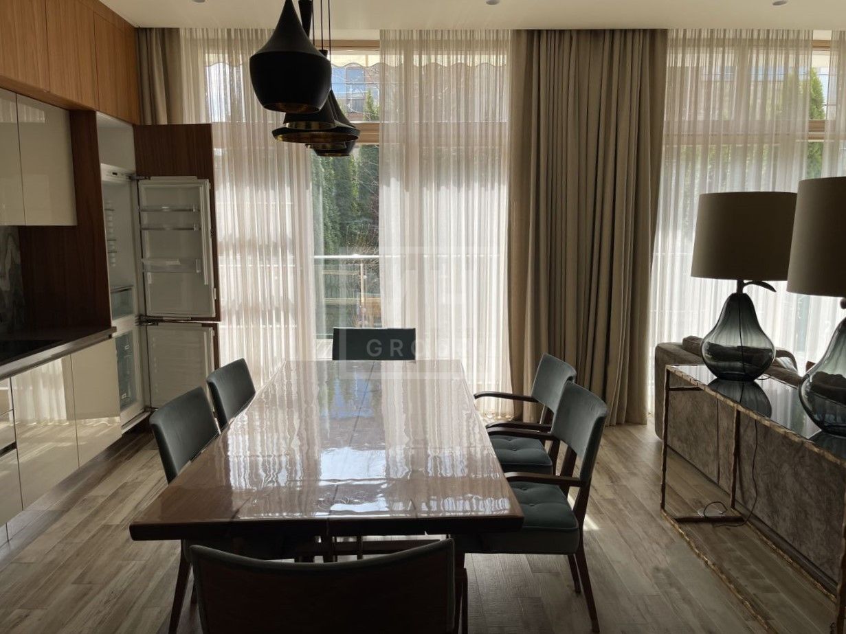 В таунхаусе площадью 265 кв. м. выполнен современный ремонт, дополненный стильной мебелью. Дом полностью готов к проживанию. По периметру участка высажены туи, которые создают ощущение приватности и украшают ландшафт.Элитный поселок таунхаусов Park Avenue расположен на 22-м километре престижного Новорижского шоссе. На его территории построено 8 комфортабельных домов, выполненных в стиле знаменитого американского архитектора Фрэнка Ллойда Райта. Таунхаусы в поселке Park Avenue, полностью построены из кирпича, а в облицовке фасадов используются такие материалы, как дерево, травертин и мрамор. Специально для самых юных жителей в поселке построен детский сад.