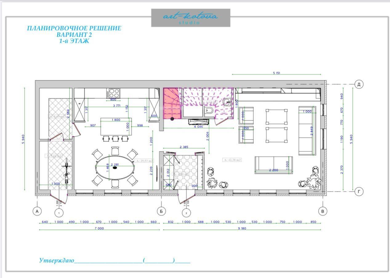 Этаж 1: холл, просторная гостиная, кухня-столовая, гостевой с/у, котельная.
