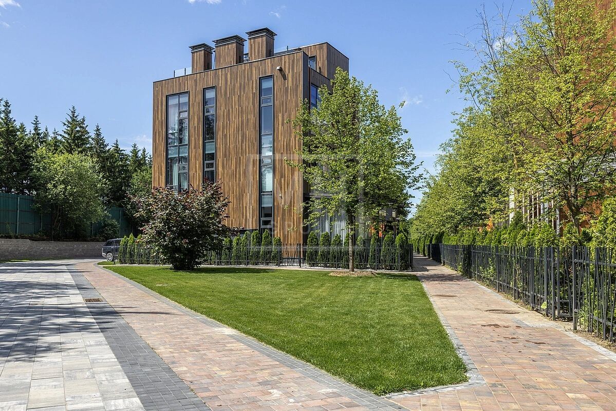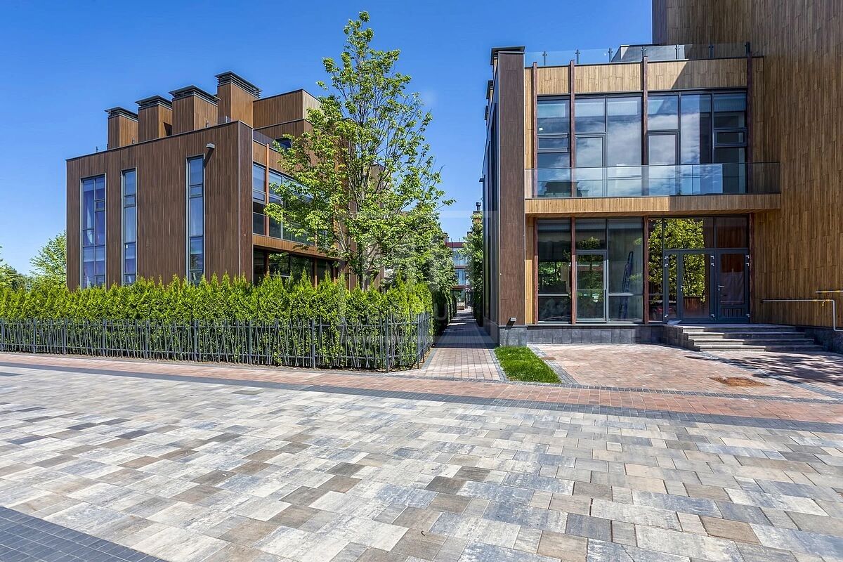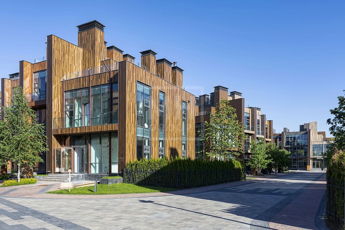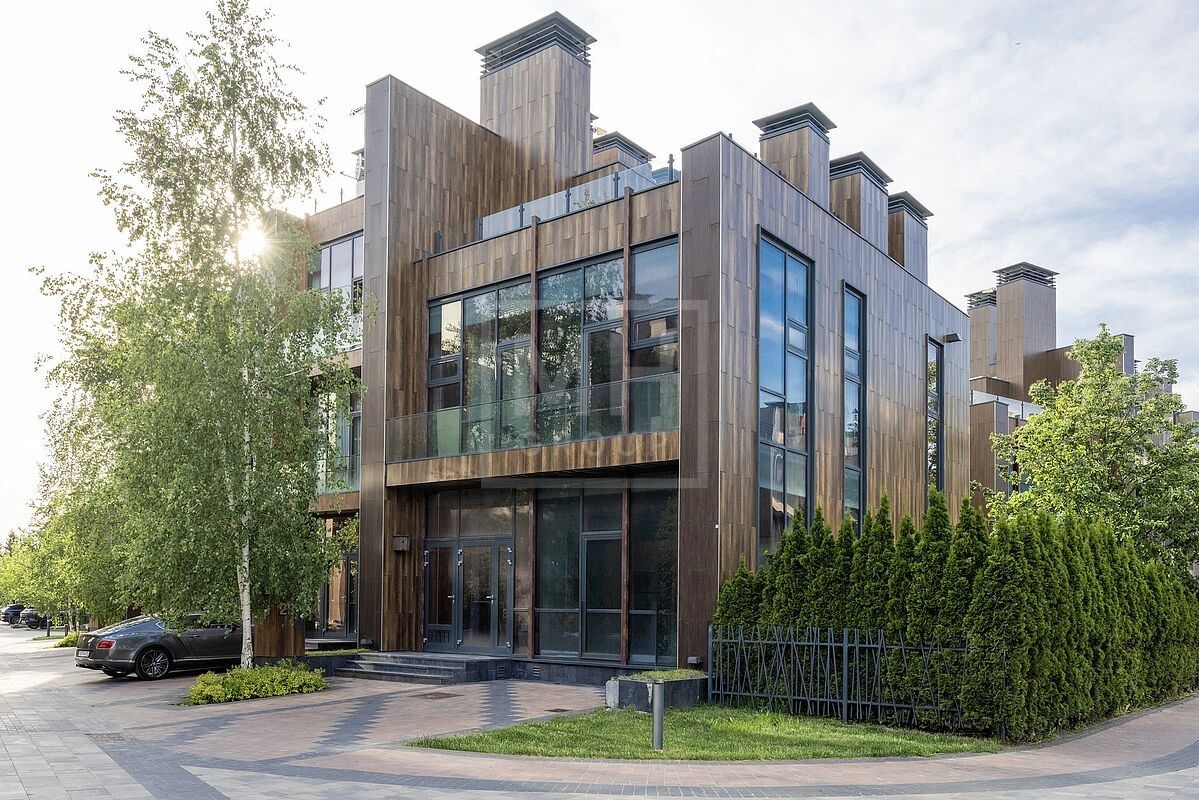 Современный таунхаус площадью 239 м² с 5 спальнями расположен на видовом участке 1,69 сотки в клубном ЖК «Футуро парк».Панорамное остекление и высокие потолки создают ощущение простора и наполняют пространство естественным светом.