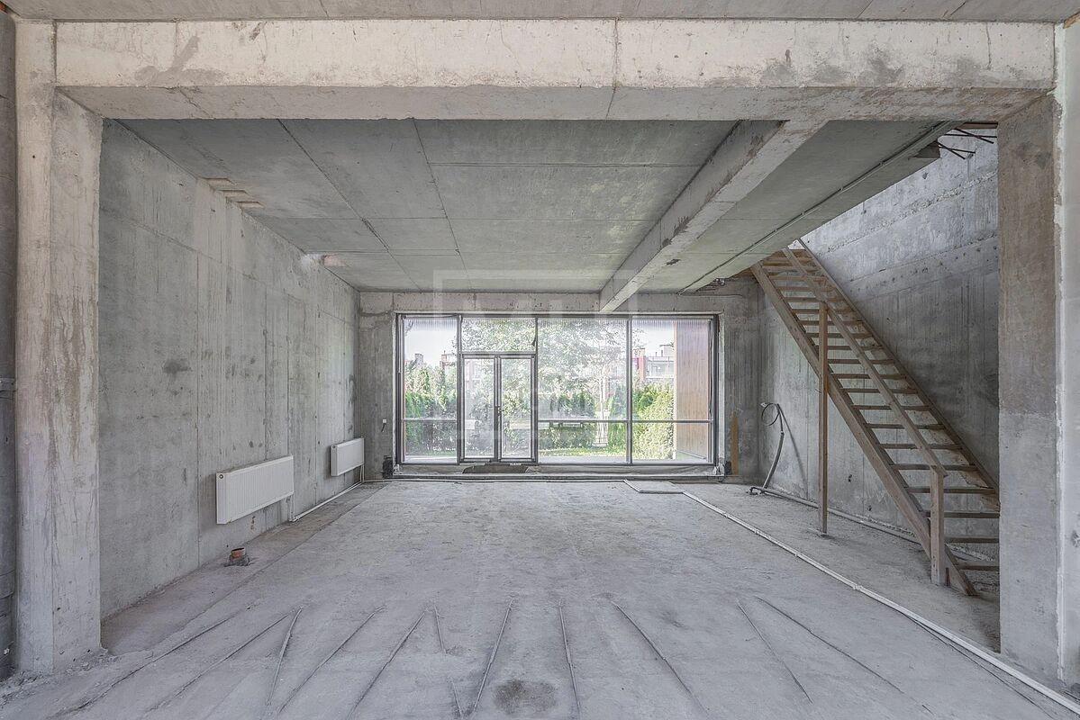 Таунхаус представлен под чистовую отделку: выполнены черновые работы, разведены коммуникации, установлен газовый котёл.