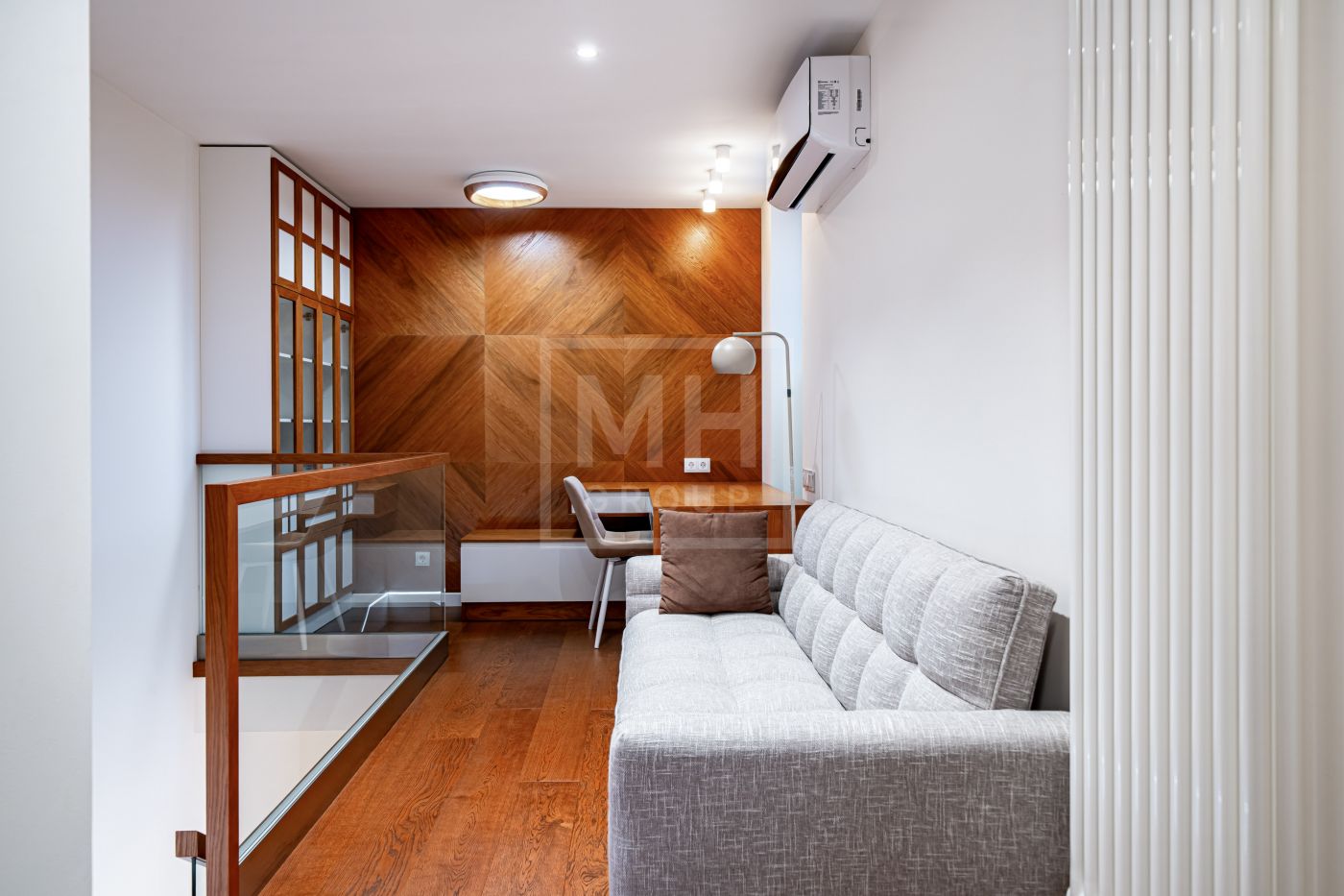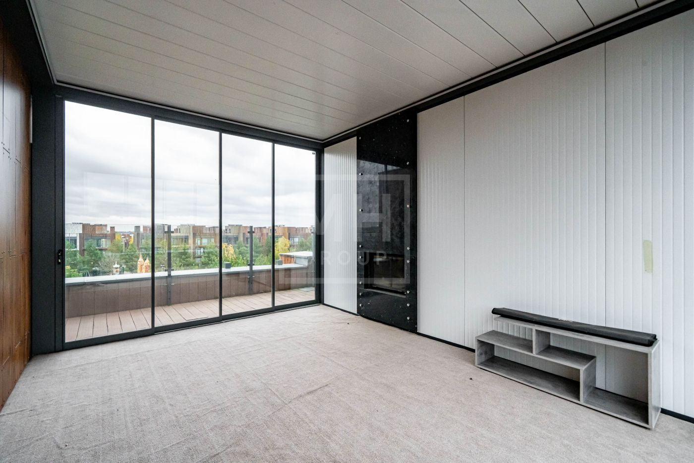 Мансарда: кабинет, лаунж-зона с дровяным камином и открывающейся перголой