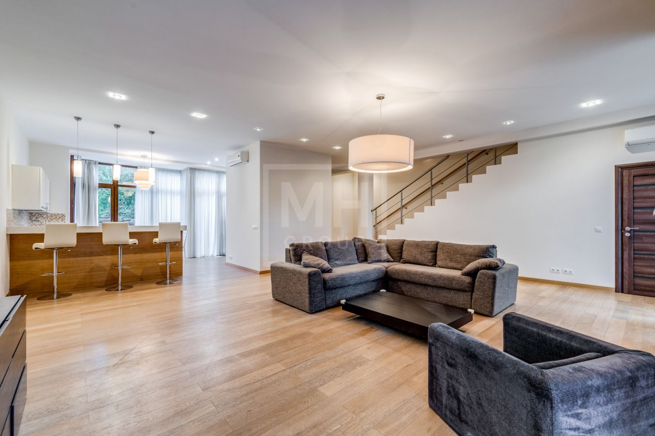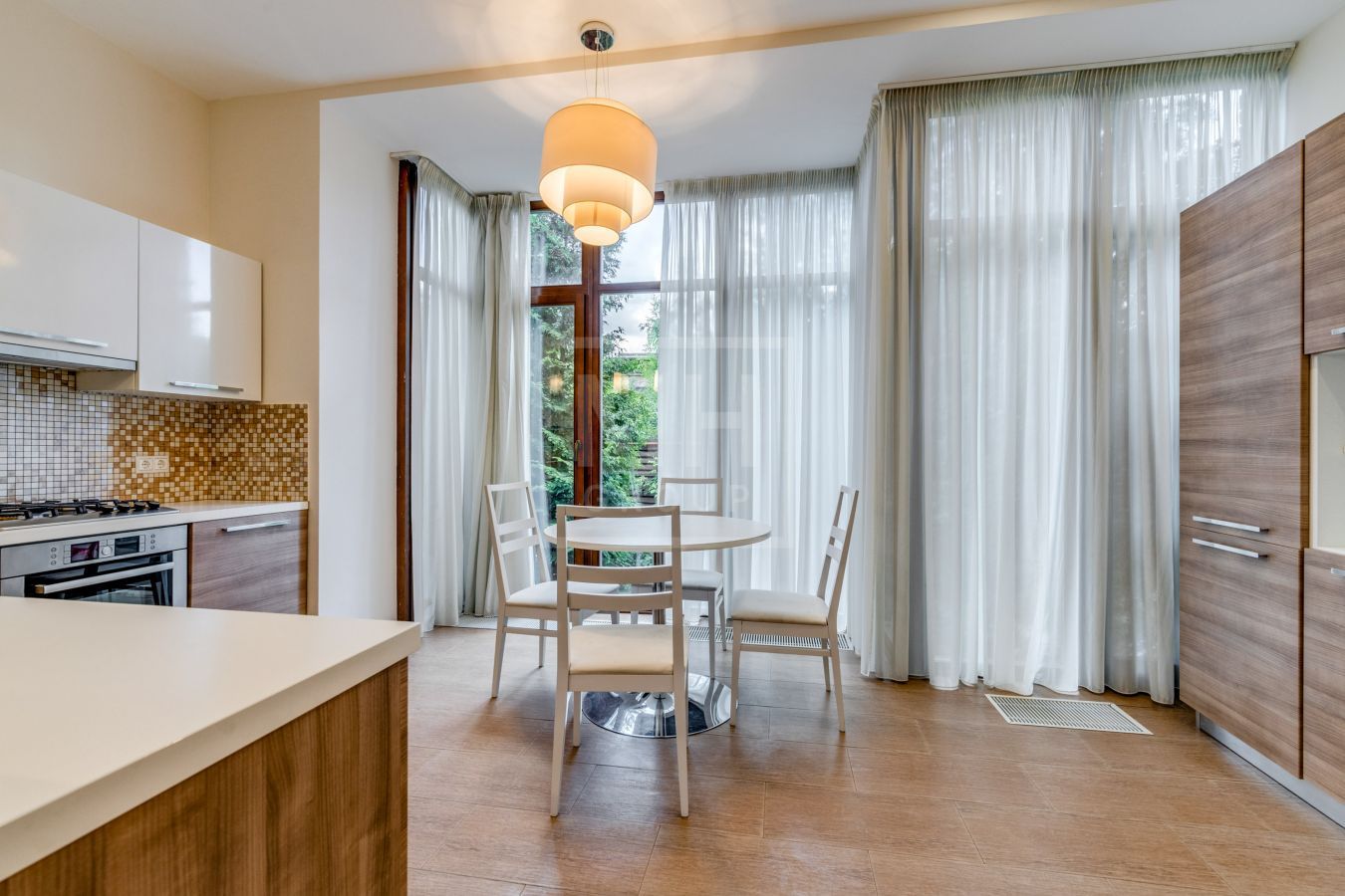 На продажу представлен светлый Таун Хаус в близи всей необходимой инфраструктуры Жуковка-1. На первом этаже : просторный холл , гардеробная , кухня-гостиная с выходом на террасу , с/у . Второй этаж : спальня с с/у, гардеробная, кабинет с выходом на балкон , гостевая спальня с /у, детская . Тёплый гараж на 2 м/м .Квартира с огромной террасой в ЖК Остров Фантазий
