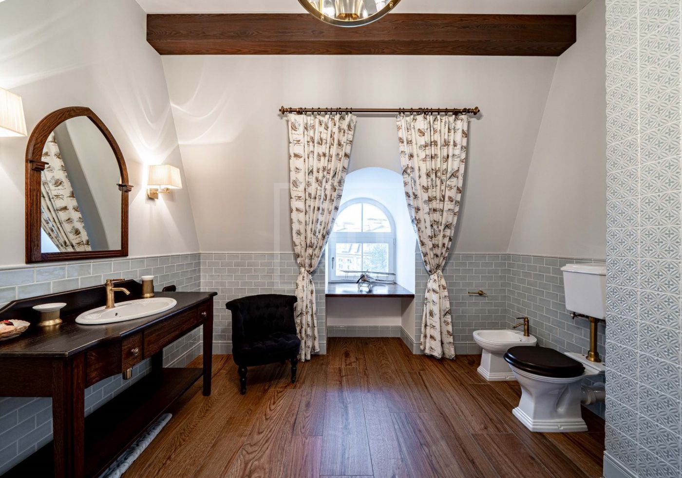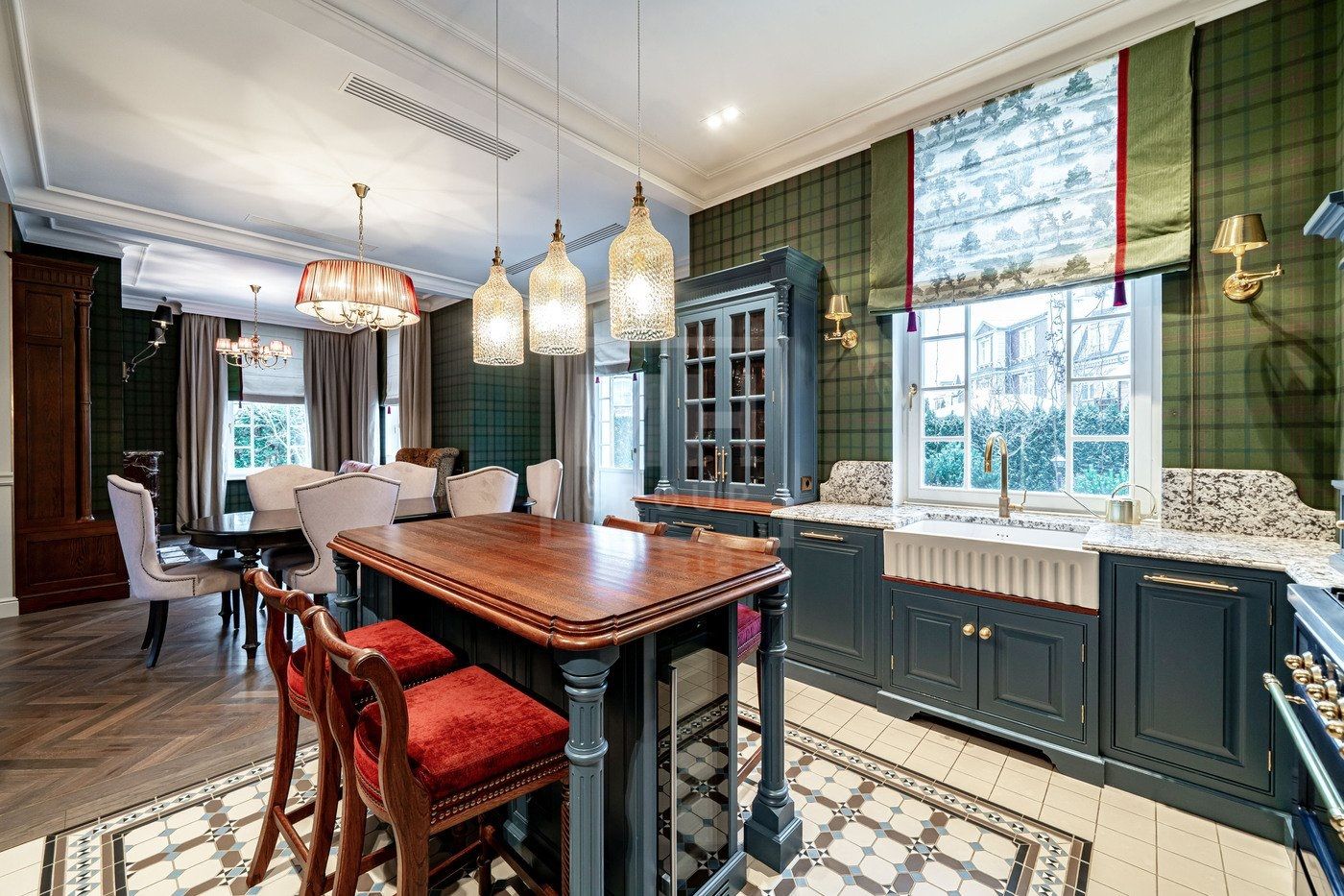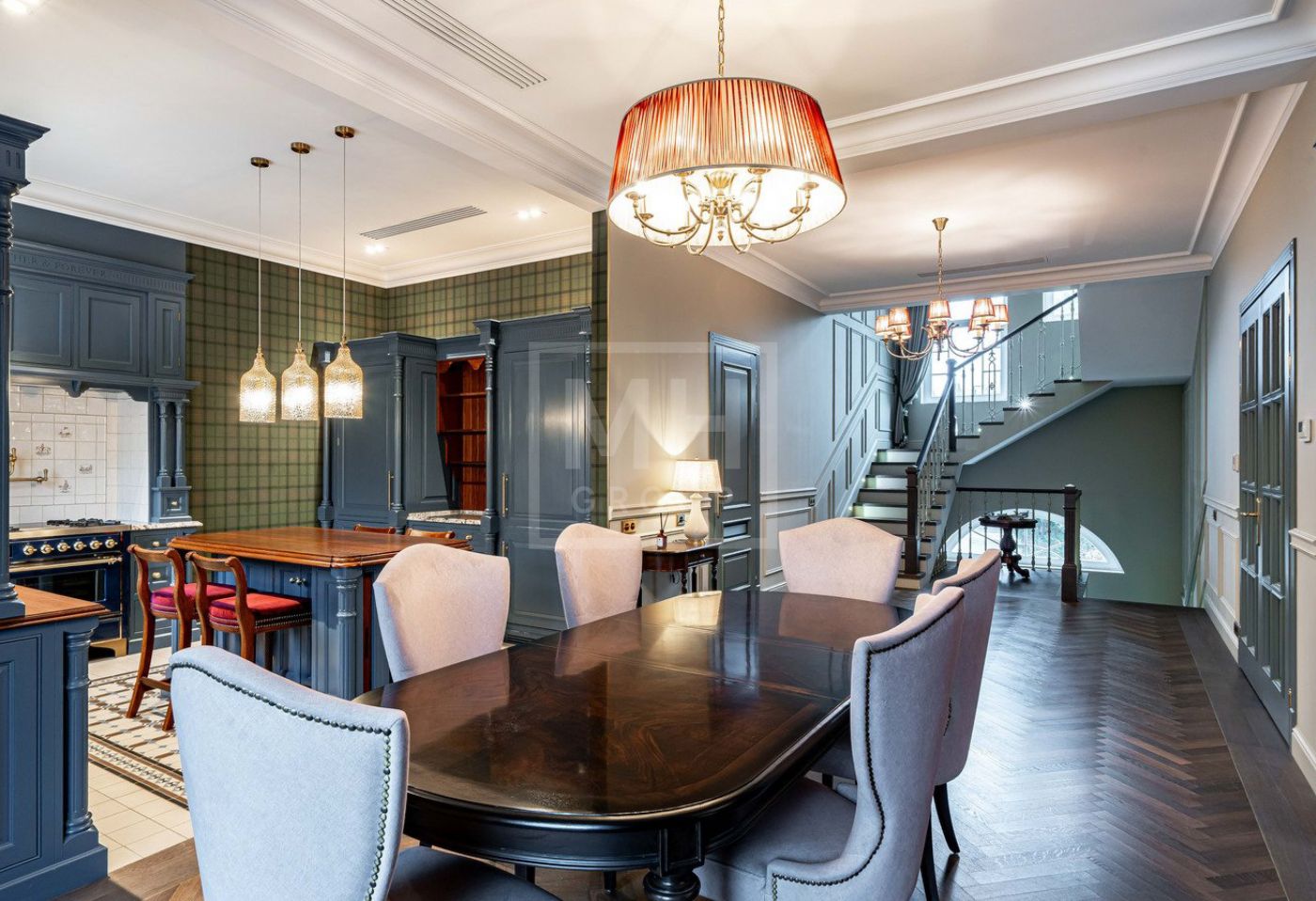 Таунхауса выполнены в изысканном английском стиле с использованием премиальных отделочных материалов и продукции премиальных производителей мебели, техники и предметов интерьера.Вся бытовая техника марки Gaggenau, варочный центр Ilve в эксклюзивном синем цвете, каминная группа от одного из ведущих производителей. Премиальная сантехника от Edward Jones, Tomas Gripper, Imperial, душевые Devon & Devon с уникальными термостатами Perrin & Rowe. Весь заказной свет и текстиль из старой доброй Англии и многое другое. Много эксклюзивных и действительно интересных и дорогих решений.