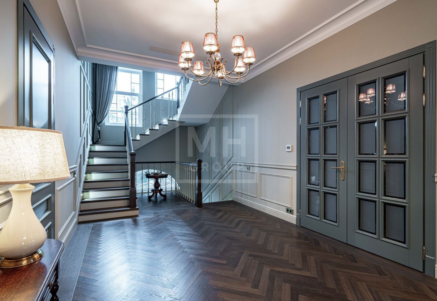 В процессе отделки выполнены инженерный и дизайнерский ремонты. Установлены системы вентиляции Comfovent 2700, канальные кондиционеры General и Mitsubishi, системы отопления и ГВС Viessmann и Arbonia, встроенные системы фильтрации, подогрева и увлажнения воздуха, а также система водоподготовки.