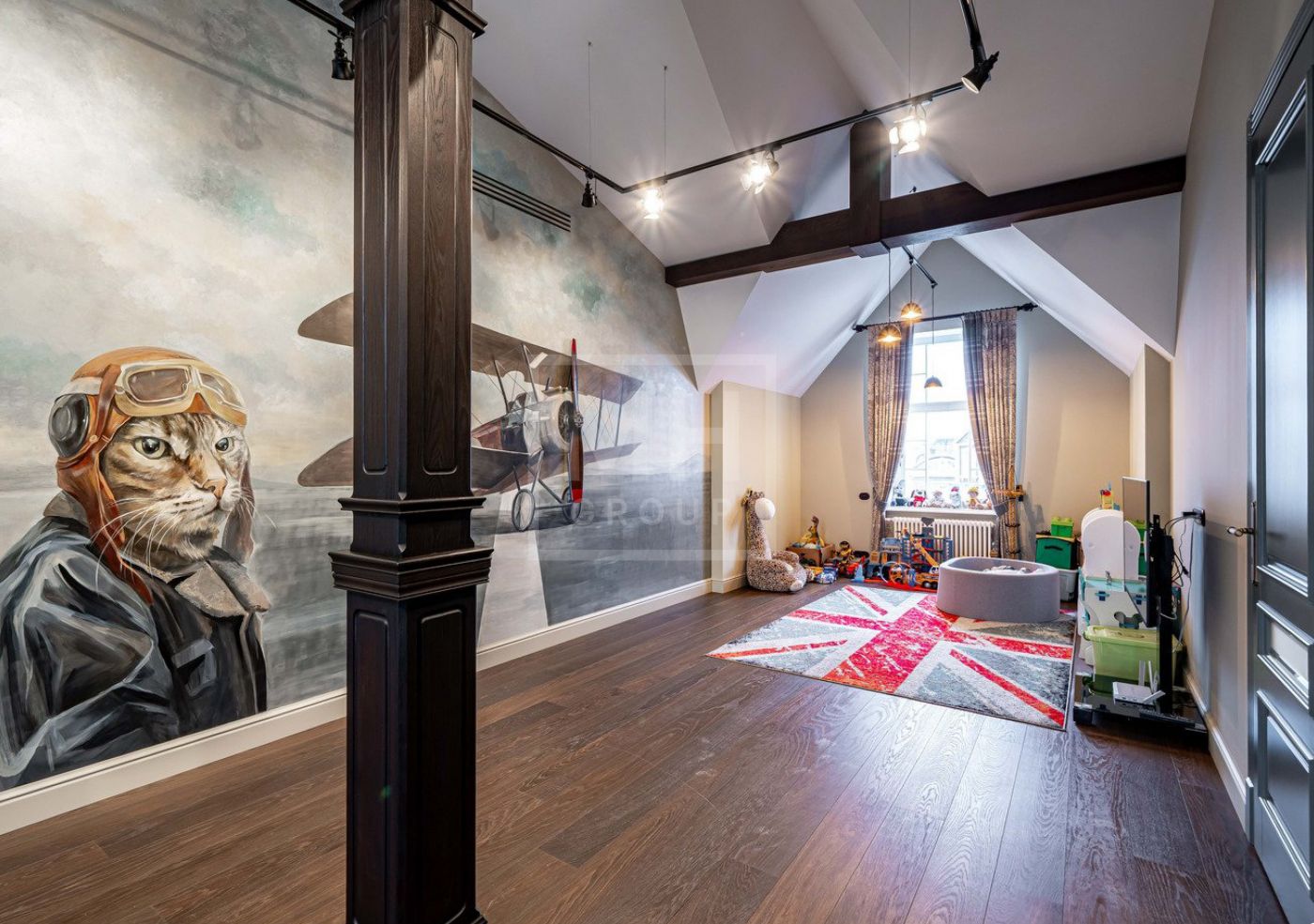 Мансарда: игровая зона с ТВ, спальня, общий санузел, спальня с санузлом и гардеробной.