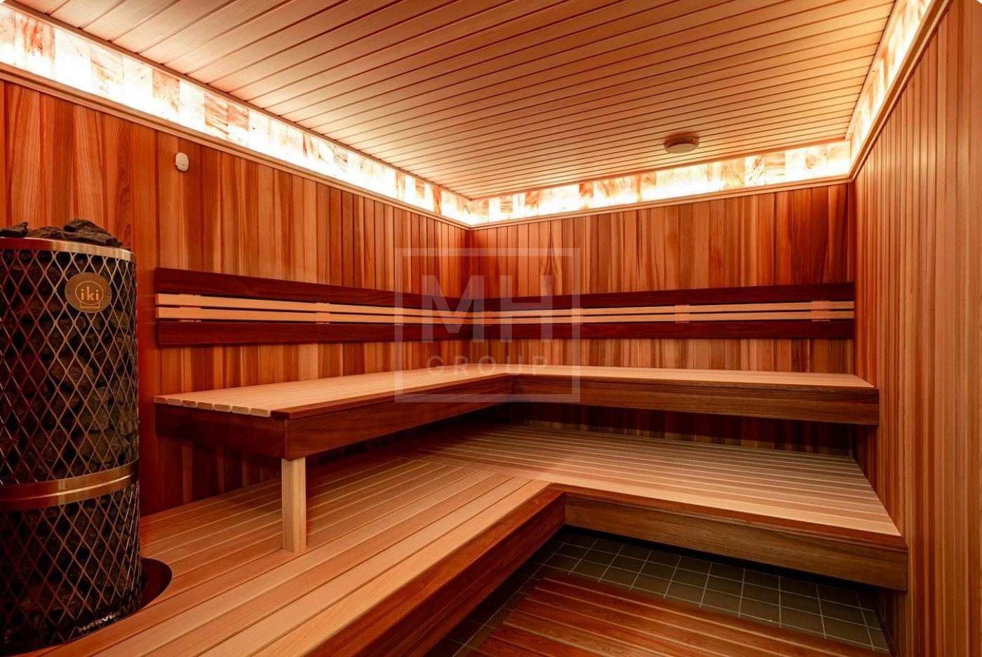 Цоколь: лаундж-зона с местом под бар и зоной для ТВ, котельная с отдельным входом с улицы, зона хранения, стирки и глажки, система автоматики, узлы учета и водоочистки; СПА-зона представлена большой сауной из канадского кедра (оборудование Iki, Harvia и Tylo), душевой и кадкой.