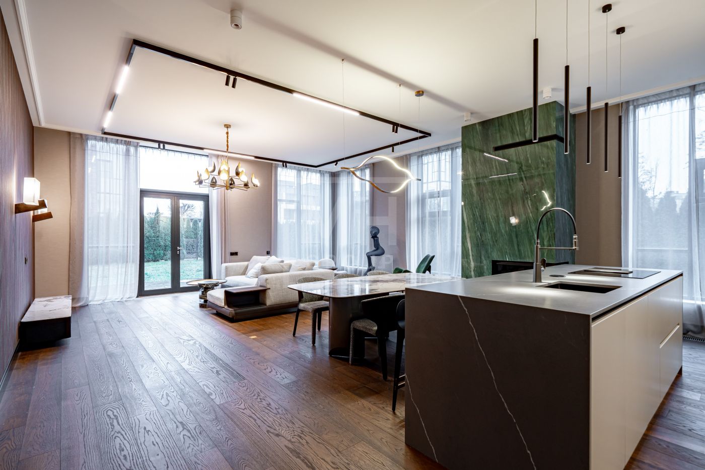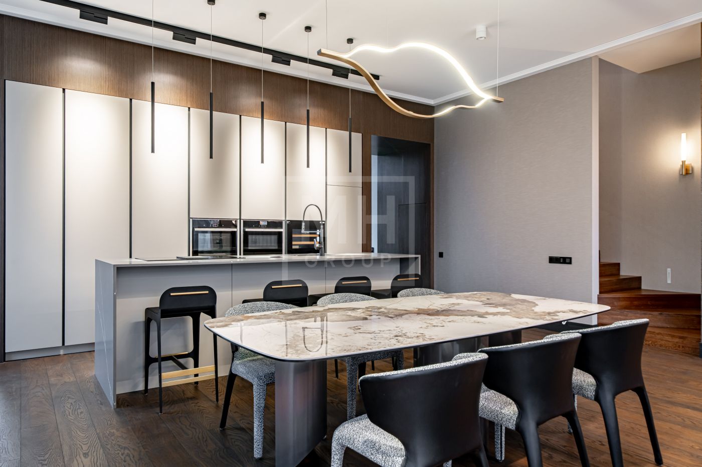 В интерьере доминируют спокойные оттенки, выразительная геометрия и продуманная работа со светом.