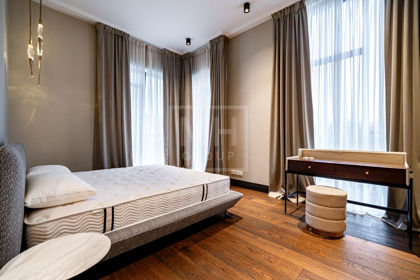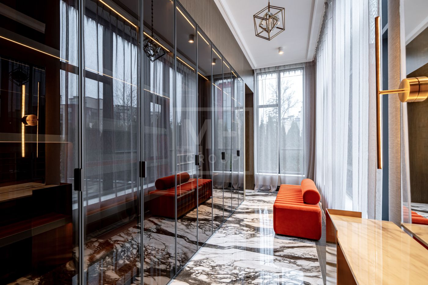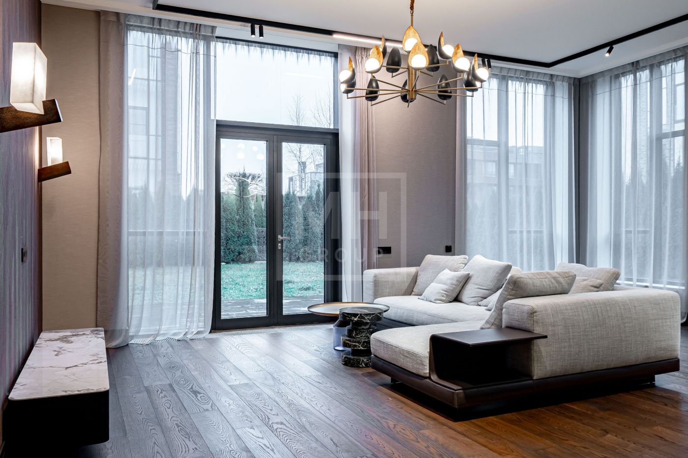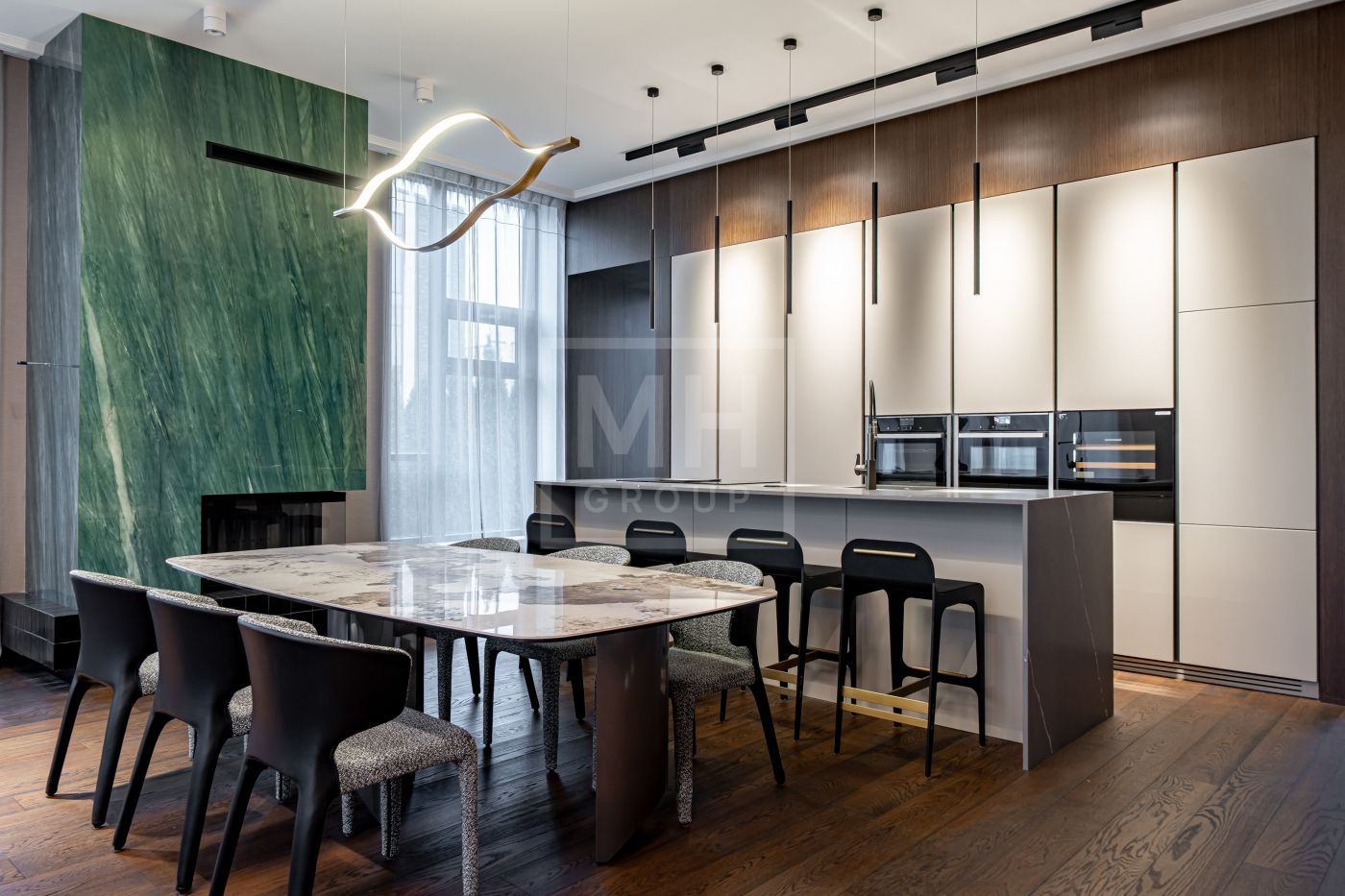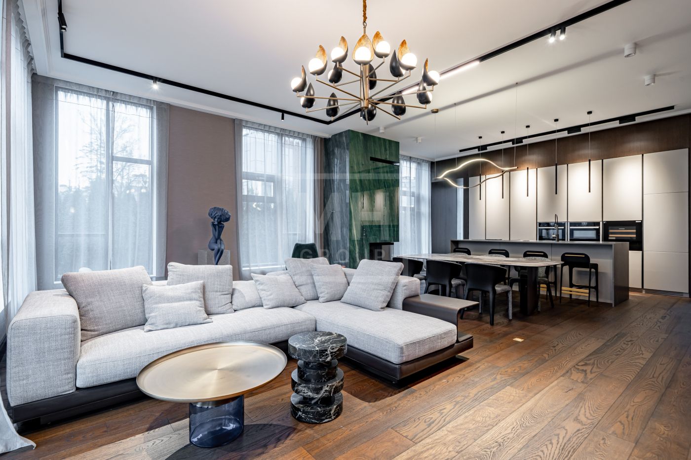 Планировочное решение: великолепная кухня, уютная гостиная, 4 мастер-спальни со своими ванными комнатами и гардеробными, роскошный кабинет, функциональная постирочная.