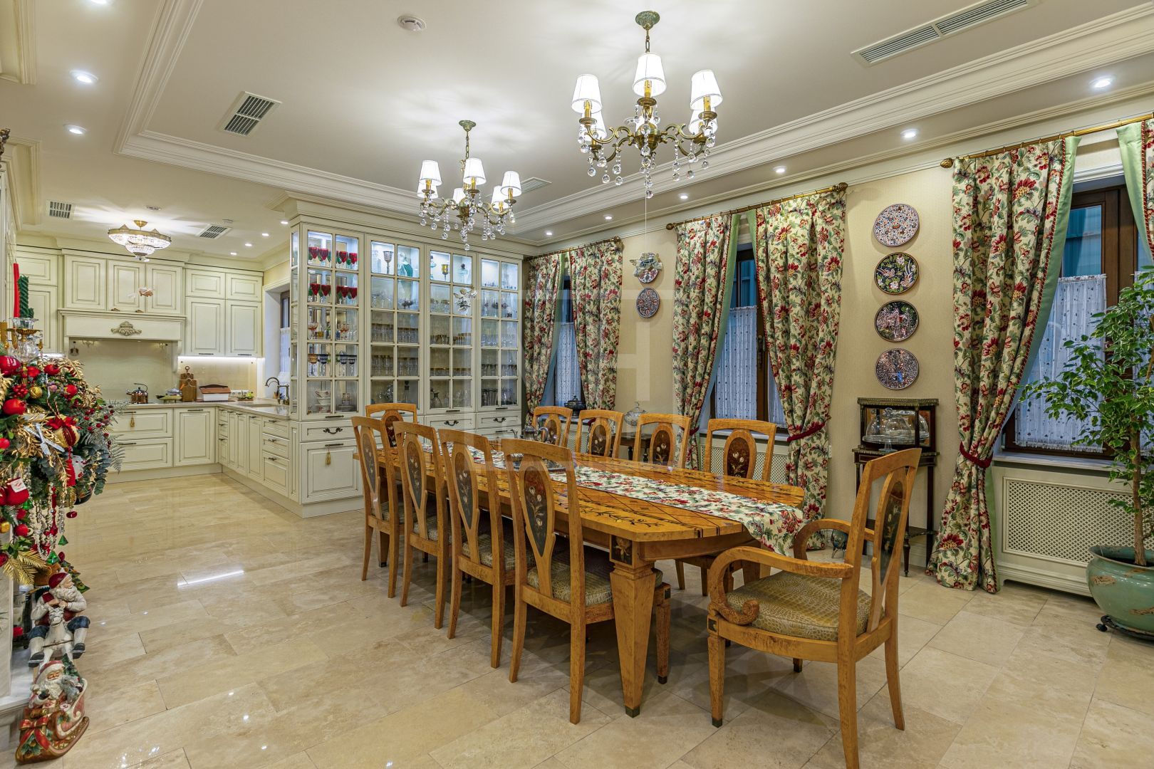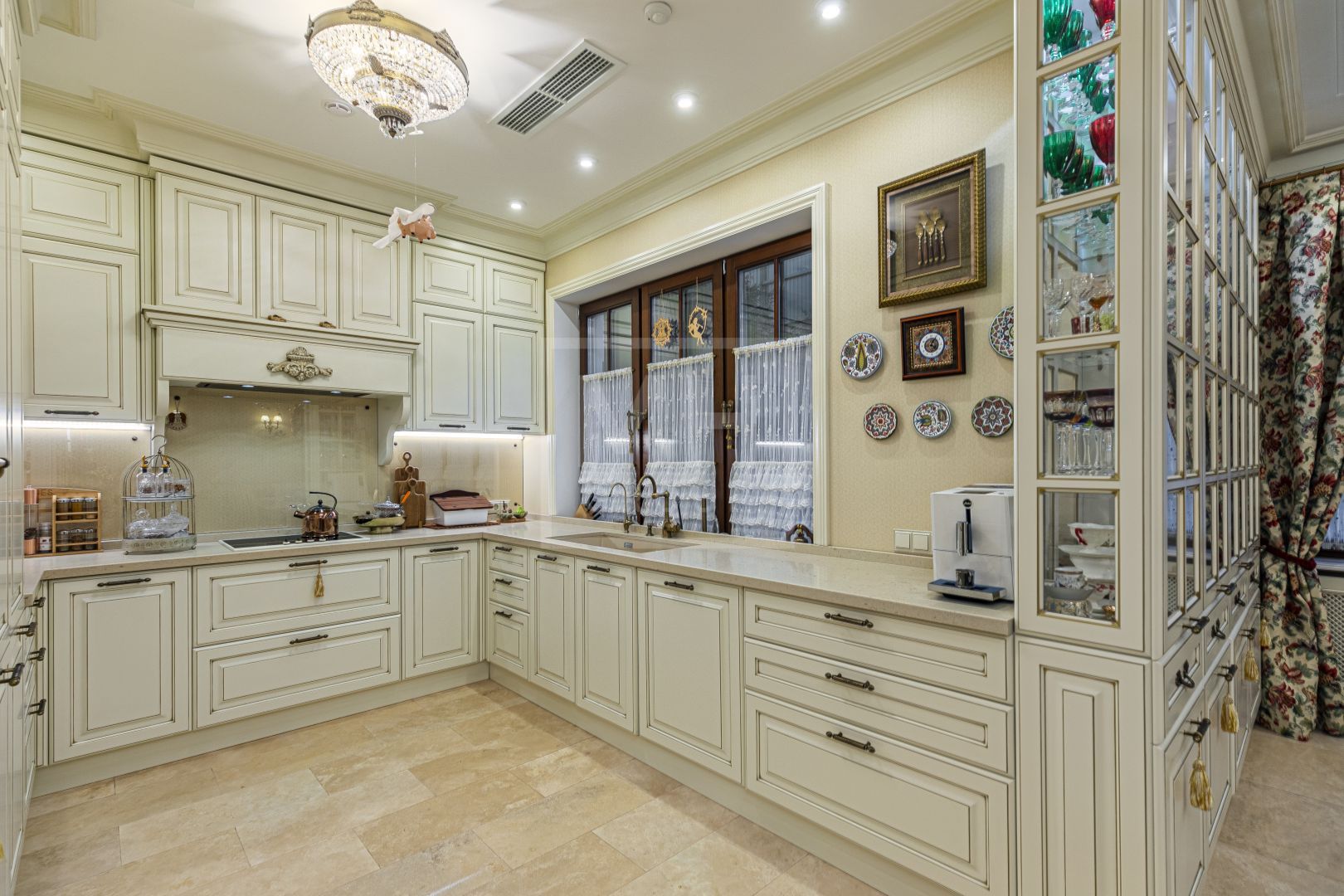 Планировка хорошо продуманна, а материалы использованные в отделке, исключительно премиальные. При входе есть вместительная гардеробная, система хранения, организованы кладовые помещения, постирочная и комната для персонала.
