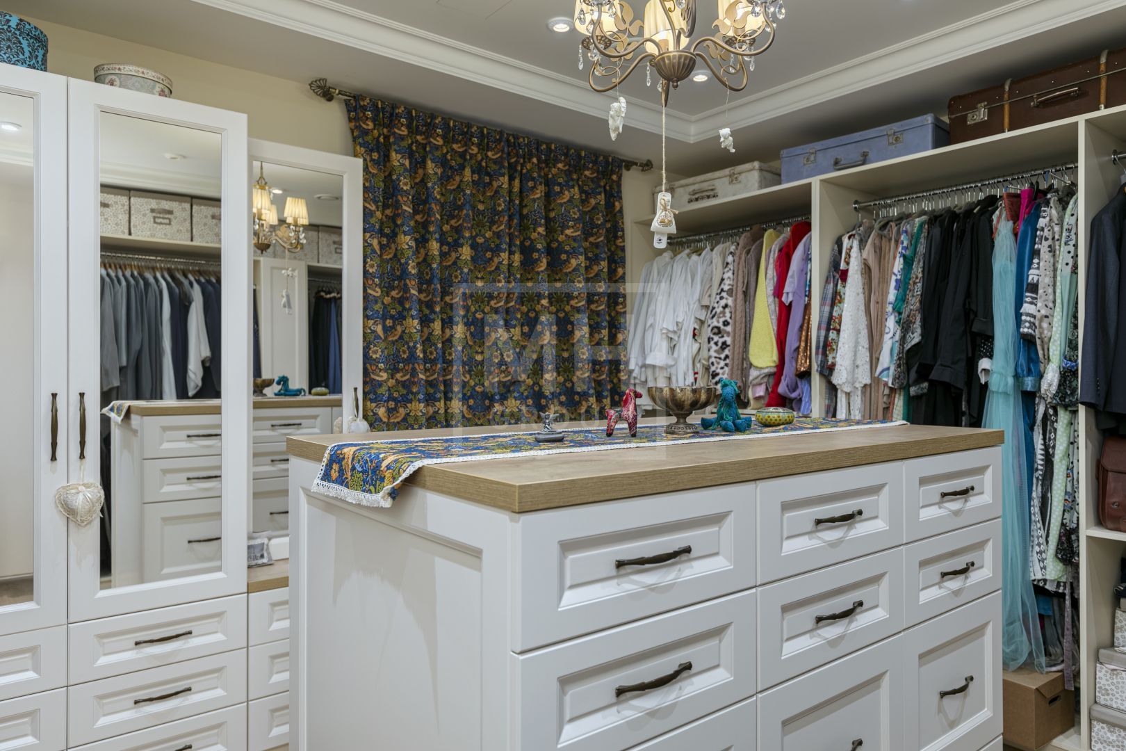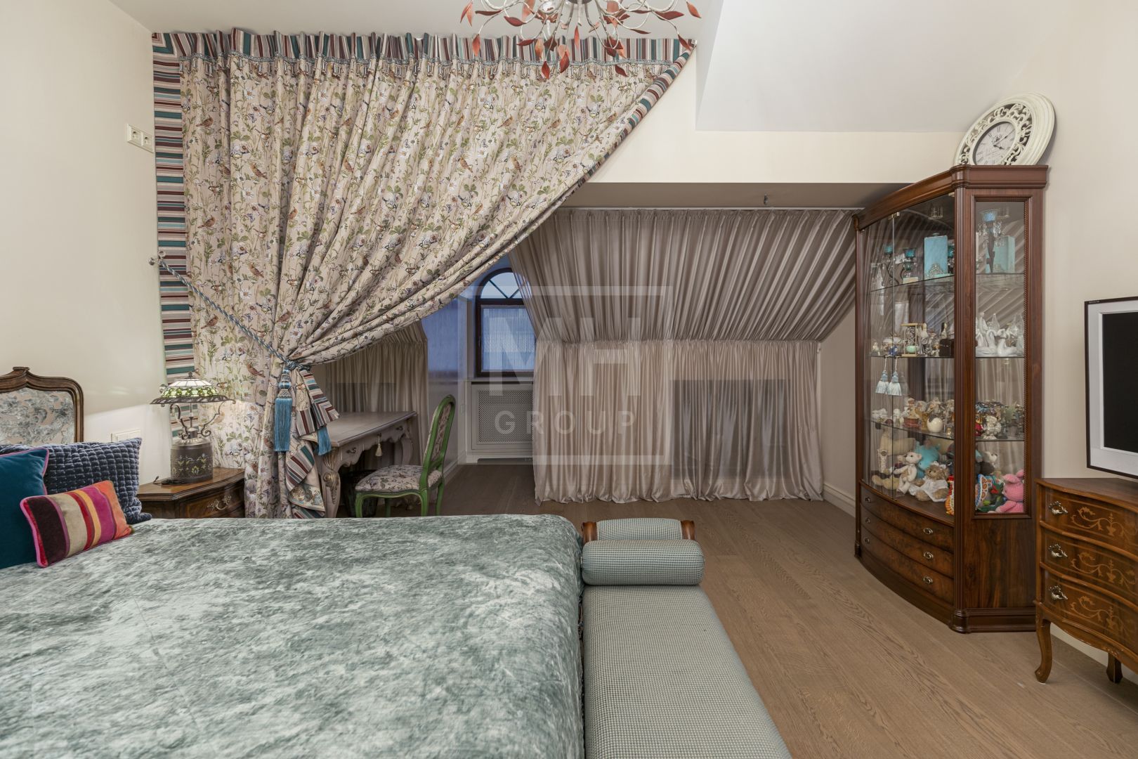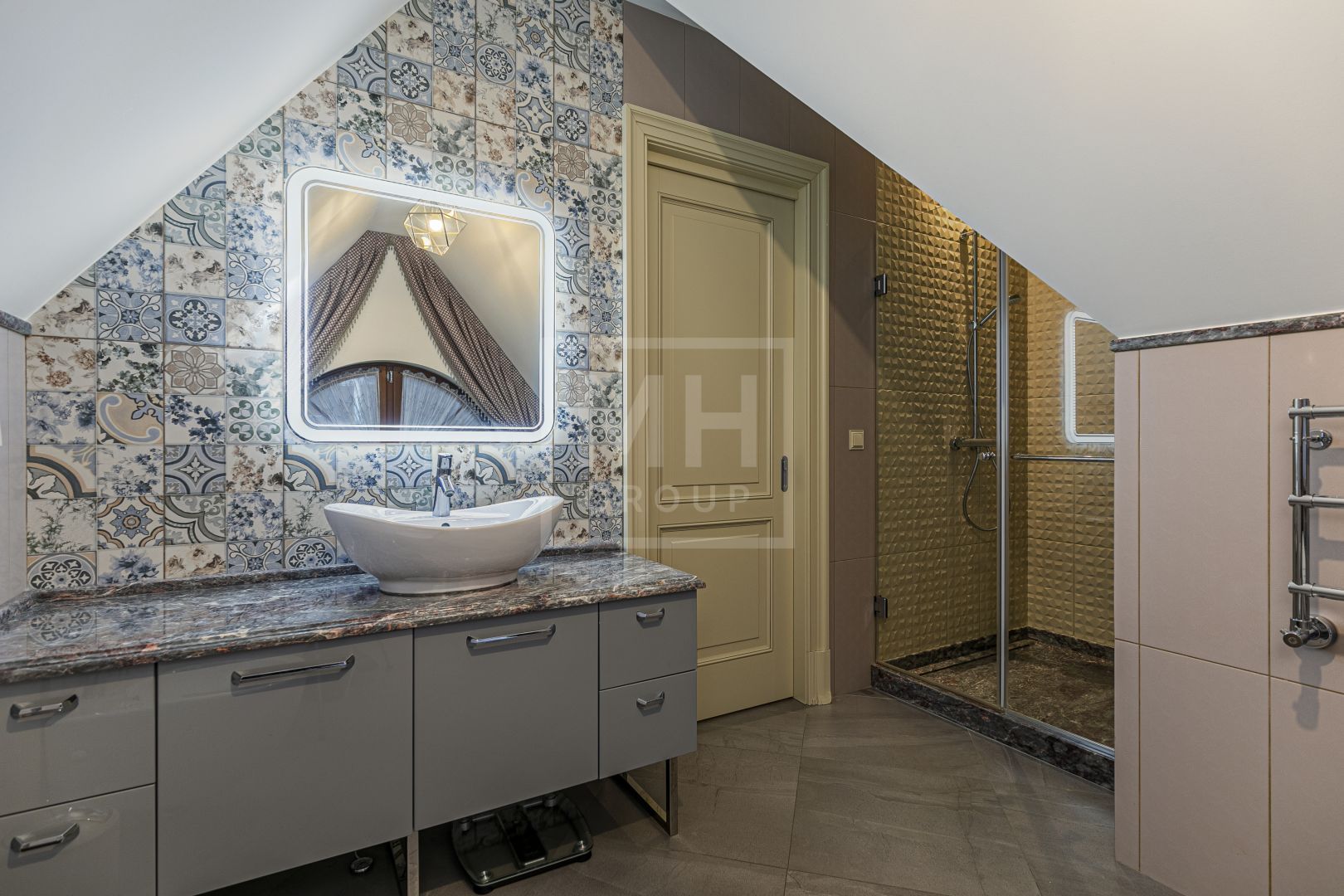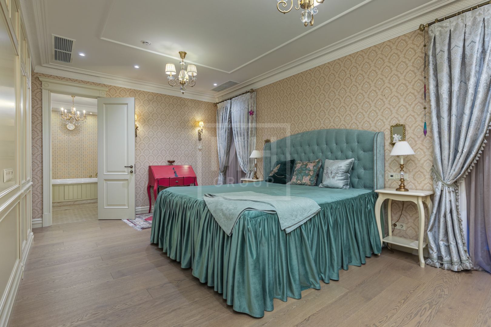 Весь второй этаж занял мастер-блок с большой гардеробной и эффектной ванной комнатой, просторный кабинет и комната с балконом. А на третьем, мансардном этаже, расположились две чудесные спальни со своими санузлами, отделанными разными сортами мрамора и испанской плитки.
