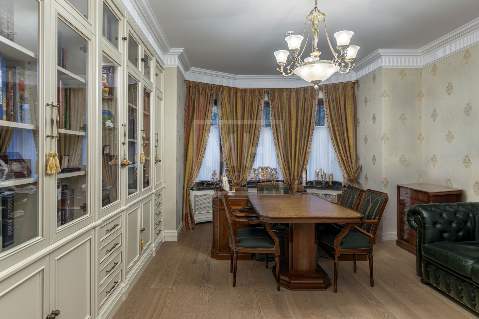Изысканность прослеживается и в интерьере этого изумительного дуплекса - изящные элементы отделки, высокие потолки, лепнина.