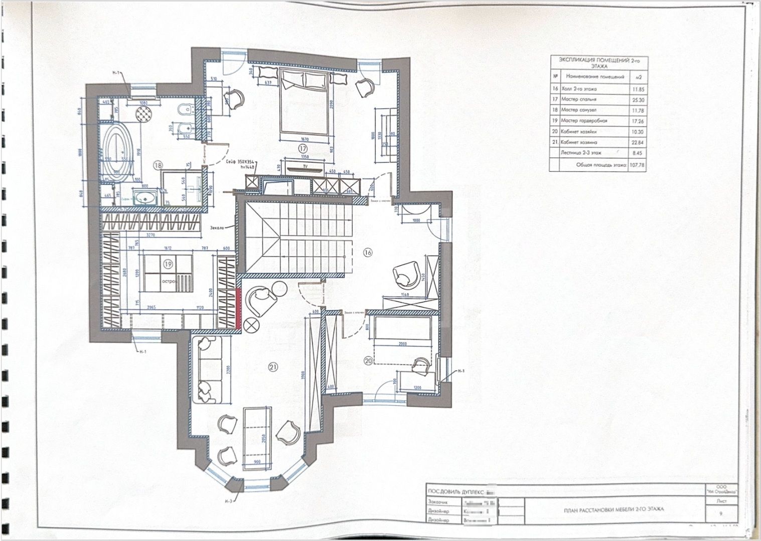 Этаж 2: мастер- этаж: спальная, гардеробная, ванная комната с балконом, кабинет с балконом, кабинет.
