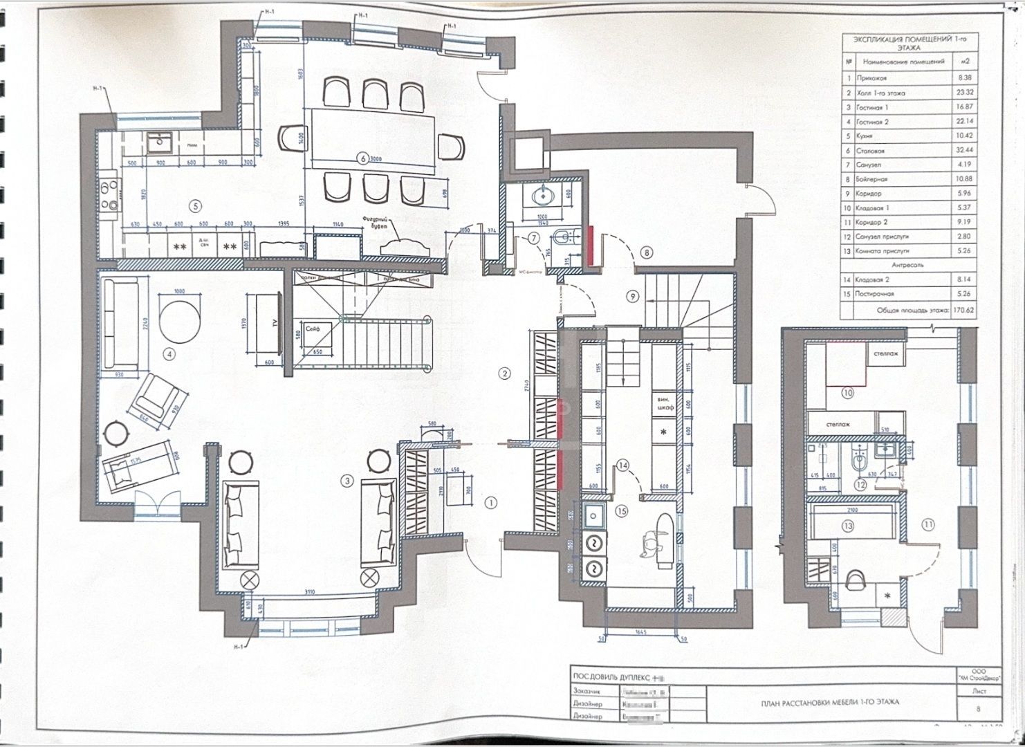 Этаж 1: гардеробная, две гостиных, кухня-столовая, с/у