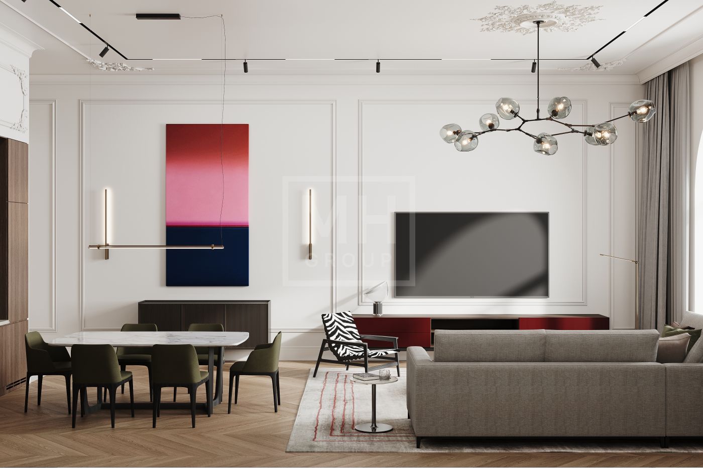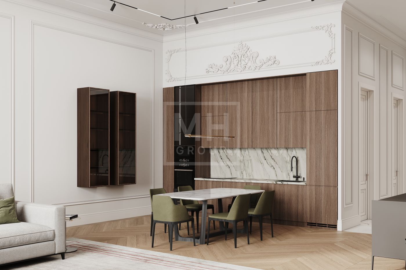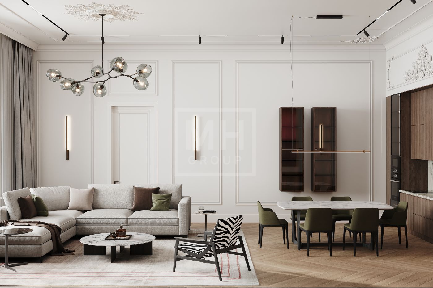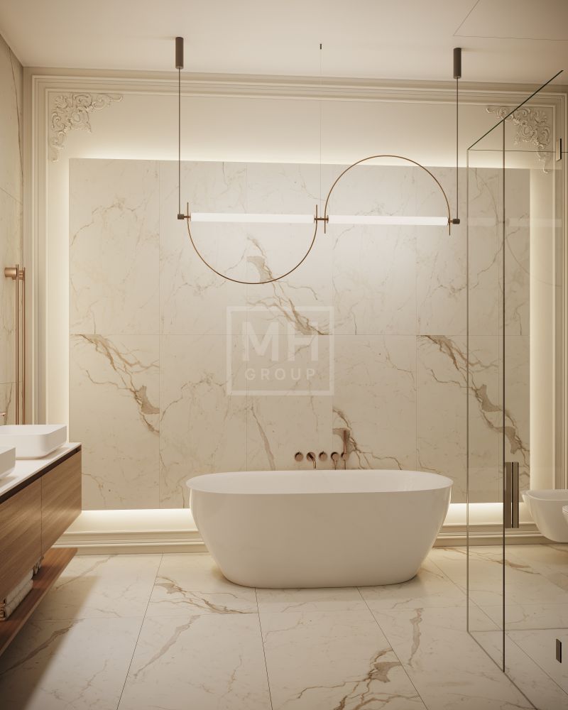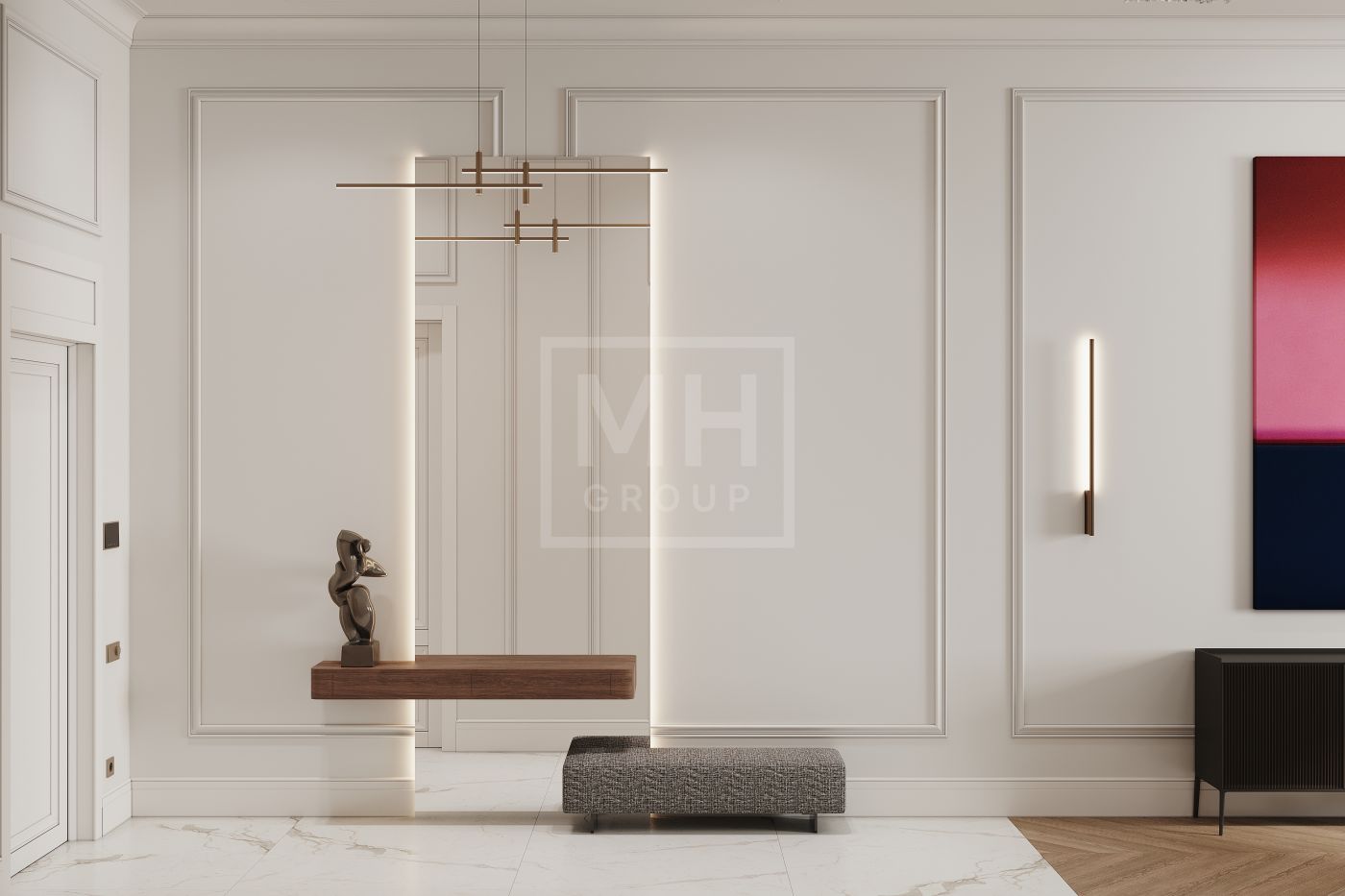 Отделка и материалы: Керамогранит Atlas Concorde. Подоконники — мрамор Pirgon Alas marble. Натуральная гипсовая лепнина Дикарт. Инженерная доска ёлка, дуб — Luxury Floor. Краска - Little Greene и William Yeoward