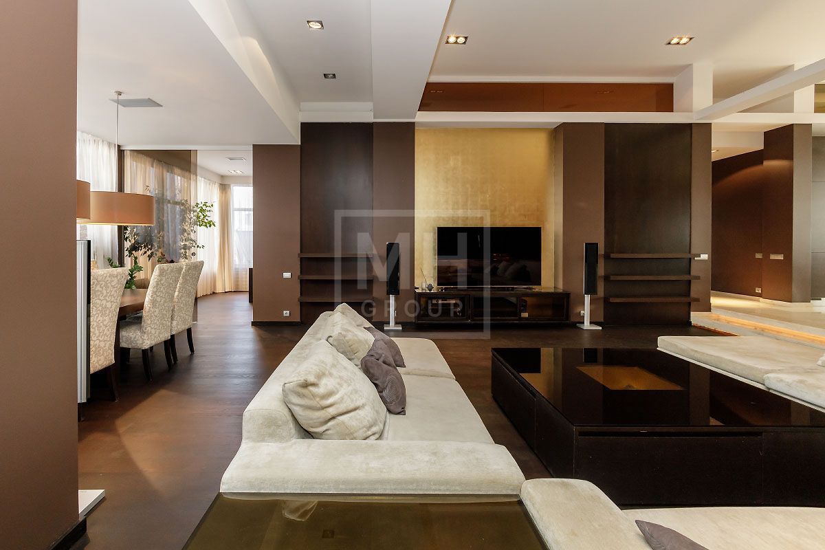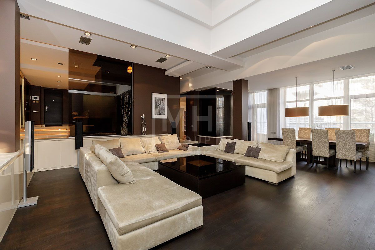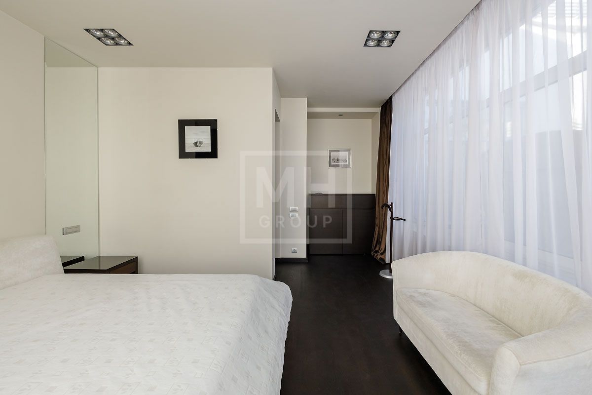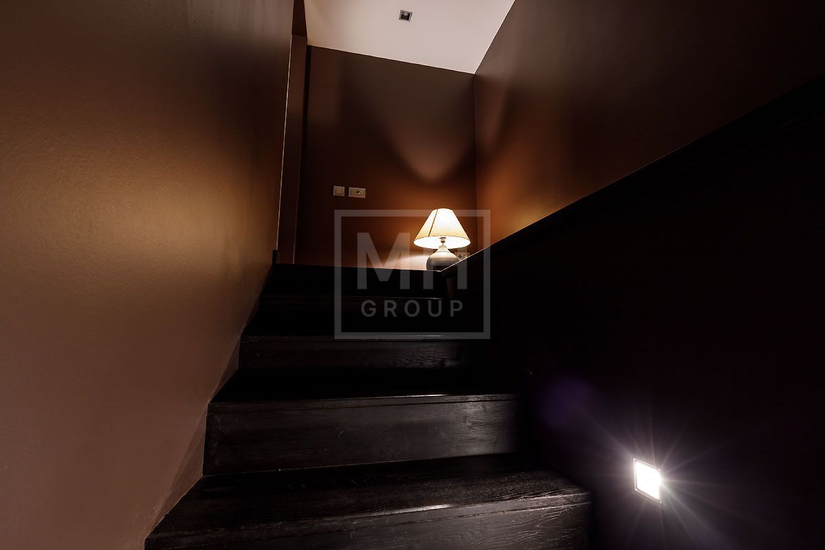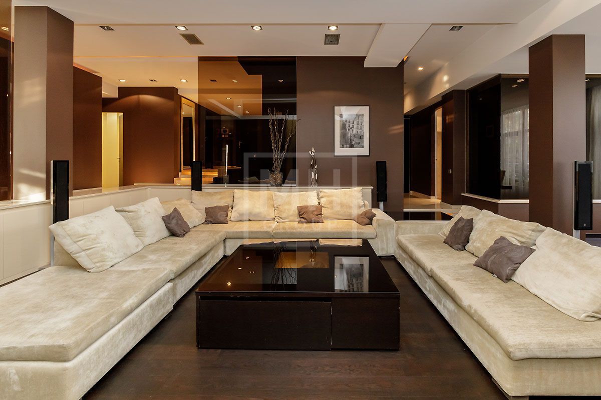 Прекрасная квартира с отдельным входом, большой верандой и своей лужайкой для барбекю.Удобная планировка, включающая кухню, гостиную, столовую, 5 спален с ванными комнатами и гардеробными, кабинет, комнату отдыха, постирочную, 2 террасы (100 и 20 метров), с одной из которых есть отдельный выход во двор и на парковку, а также на зеленую лужайку с газоном.