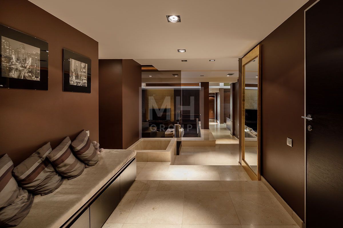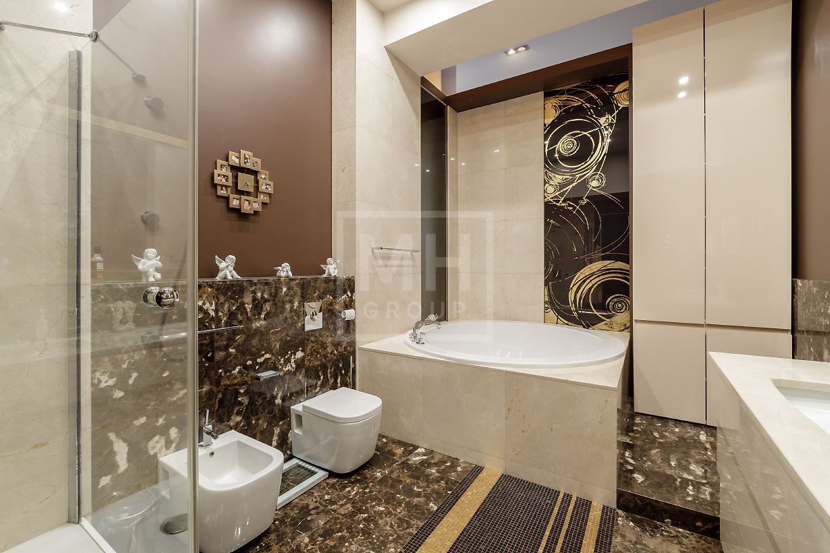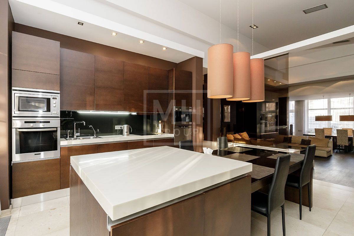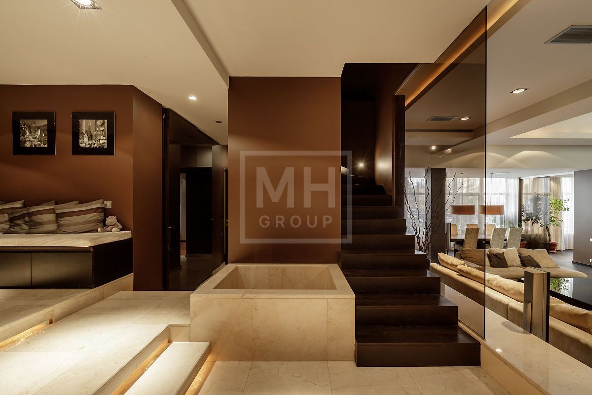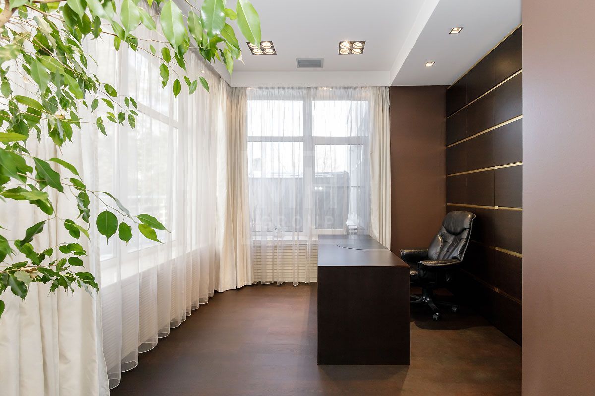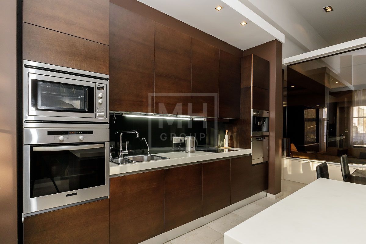 Прекрасная квартира с отдельным входом, большой верандой и своей лужайкой для барбекю.Удобная планировка, включающая кухню, гостиную, столовую, 5 спален с ванными комнатами и гардеробными, кабинет, комнату отдыха, постирочную, 2 террасы (100 и 20 метров), с одной из которых есть отдельный выход во двор и на парковку, а также на зеленую лужайку с газоном.