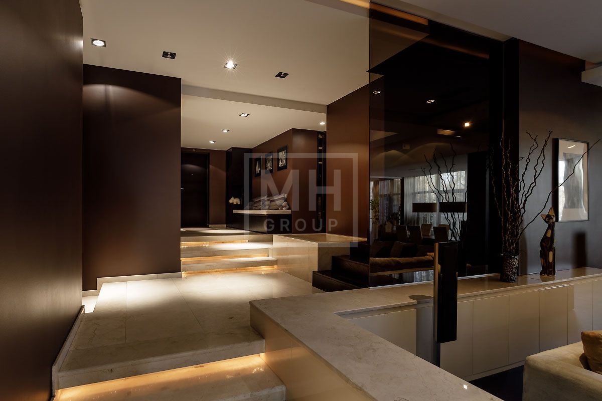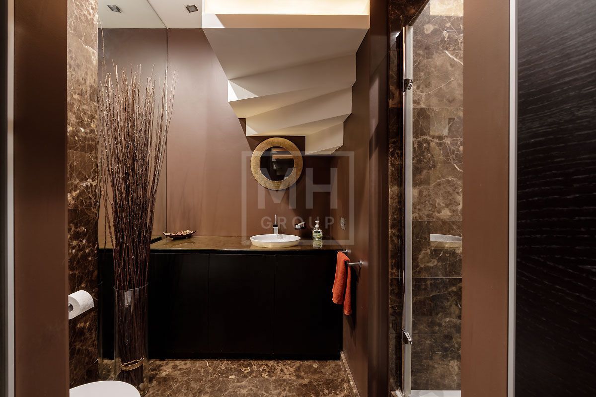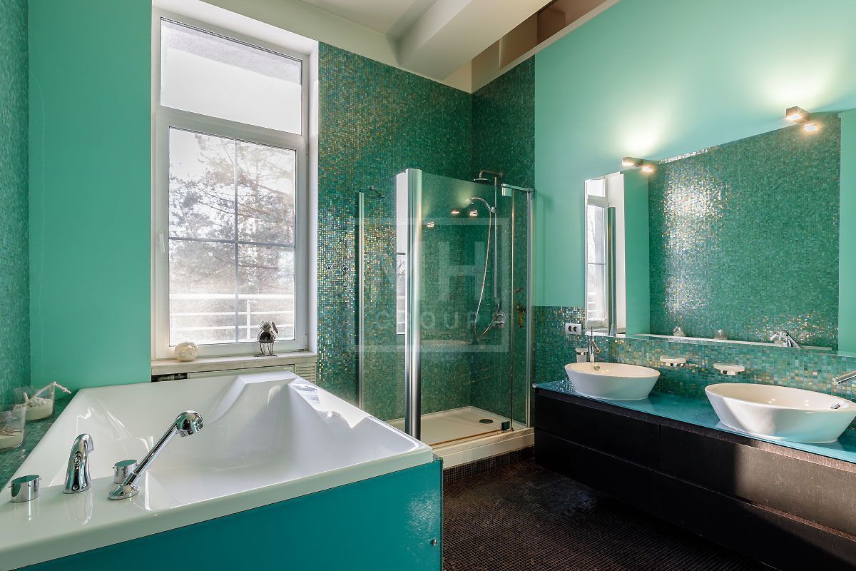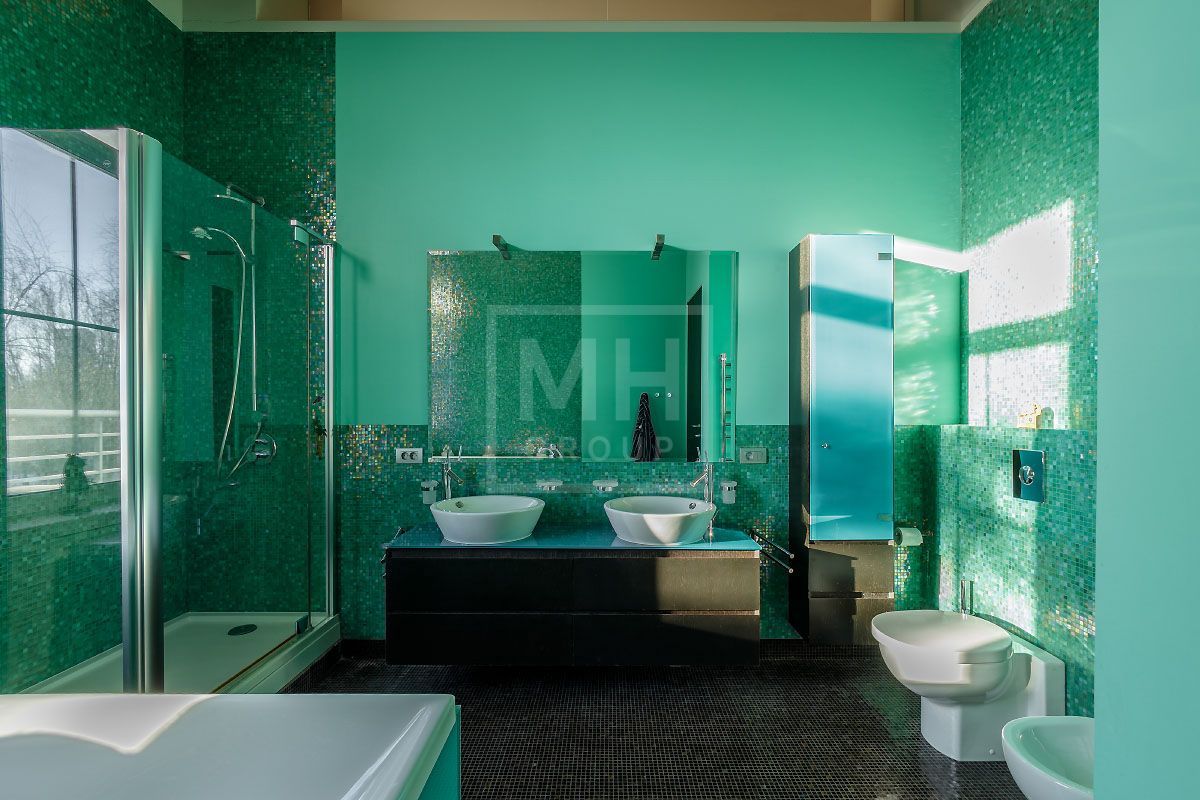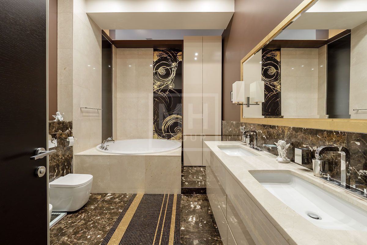 Прекрасная квартира с отдельным входом, большой верандой и своей лужайкой для барбекю.Удобная планировка, включающая кухню, гостиную, столовую, 5 спален с ванными комнатами и гардеробными, кабинет, комнату отдыха, постирочную, 2 террасы (100 и 20 метров), с одной из которых есть отдельный выход во двор и на парковку, а также на зеленую лужайку с газоном.