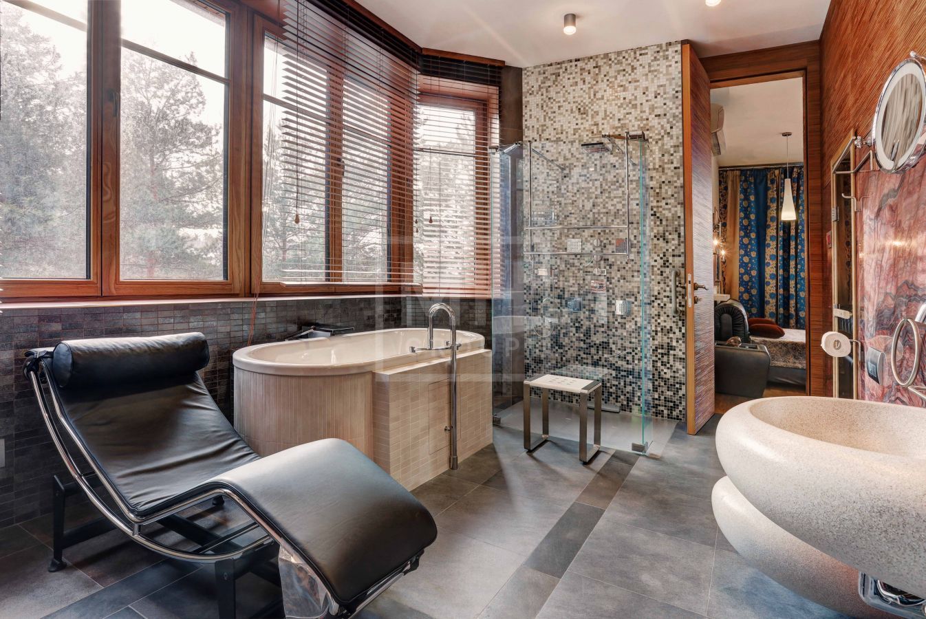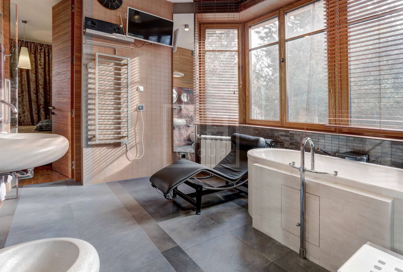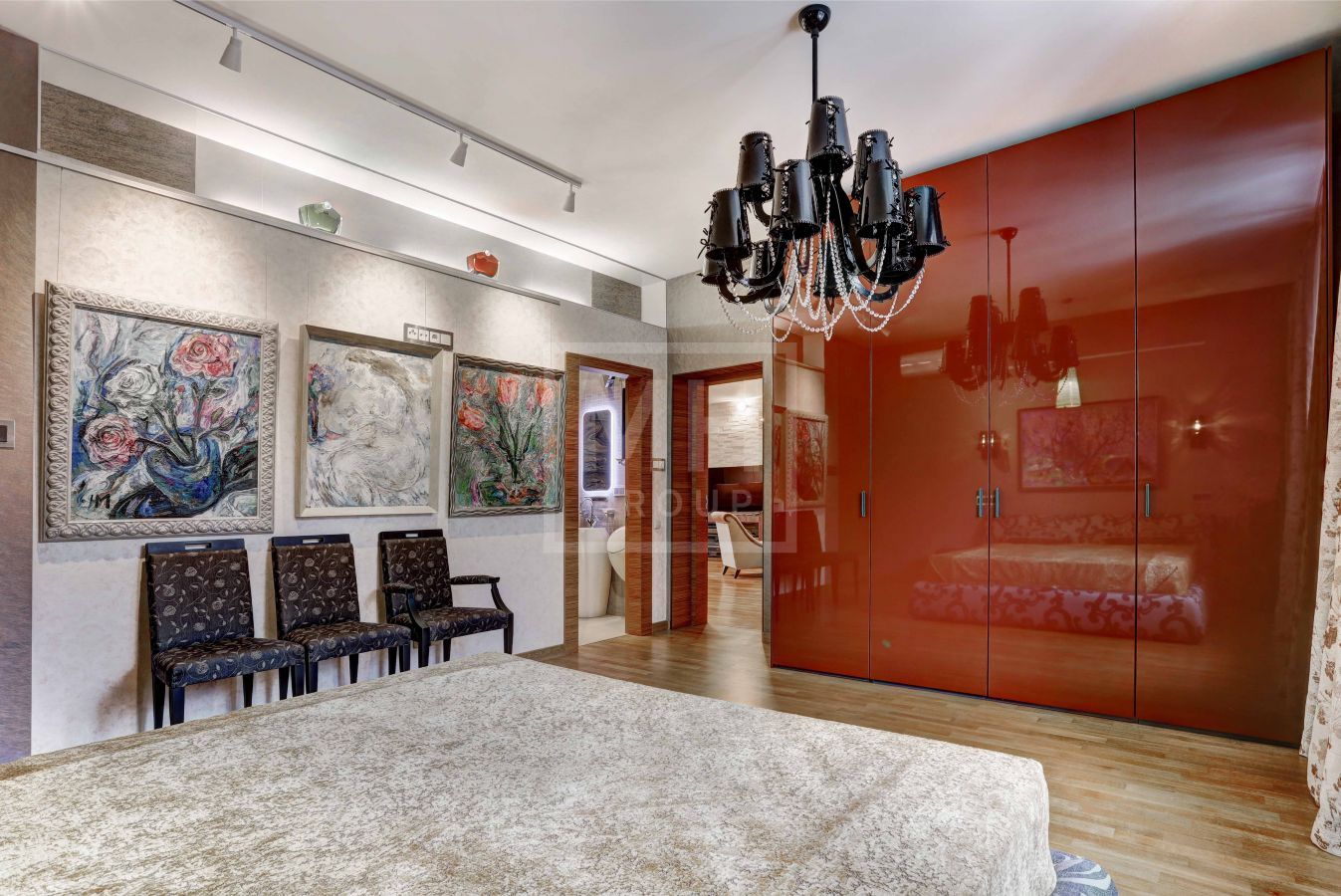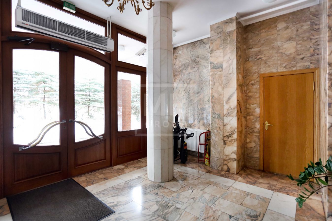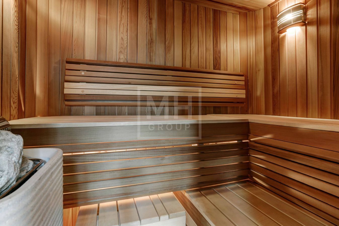 Лучшая из квартир на 5-м этаже клубного дома внутри поселка ФРМУ с видами на 3 стороны света. Квартира на семью из трех человек с качественной дорогой отделкой. Планировкой предусмотрены просторный холл, гардеробная, гостевой с/у, столовая-кухня, гостиная с камином из натурального мрамора, мастер-спальня с большим санузлом, хаммамом и сауной, вторая спальня со своим санузлом, кабинет. Стены квартиры из экологичного натурального камня талькохлорит, двери выполнены из черной меди Laura Meroni, обои из натурального шелка в спальнях. В санузлах отделка выполнена из лучших пород мрамора и гранита, привезенных из Бразилии, установлена сантехника Villeroy&Boch лимитированной коллекции Stone, TV экраны, хаммам отделан натуральной мозаикой, привезенной из Италии.Поселок ФРМУ - это лесопарковая зона на территории бывшего дома отдыха «Кунцево». Здесь была ближняя дача Брежнева: чистый воздух, вековые сосны, живописный ландшафт. Поселок строго охраняется (круглосуточное видеонаблюдение и патрулирование). В ближайшем доступе вся необходимая инфраструктура: английская школа «Росинка», гимназия «Сократ», Московская школа управления «Сколково», спортивные центры (фитнес-клуб с двумя бассейнами ), гольф-поля и теннисные корты, конно-спортивный комплекс, салоны красоты и рестораны.