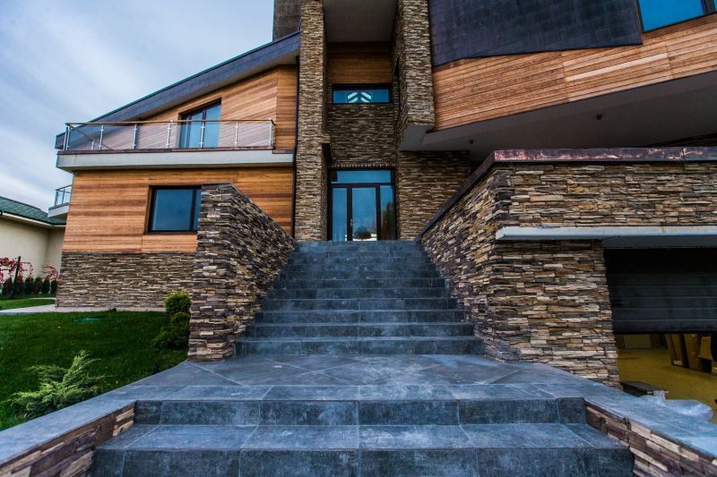 По всей площади комплекса раскинулись полторы сотни невероятно красивых домовладений, построенных по специальному заказу архитектурным бюро PORTNER. При строительстве использовались только самые экологически-чистые и современные материалы. Конструкцией домов послужил монолитный каркас, а для облицовки использовали темный и светлый кирпич и древесину сибирской лиственницы. Для оформления крыши и защиты ее от дождей использовали продукцию компании Тегола и Stiger. В экстерьере нашли свое место элементы художественной ковки и авторская мозаика, очень гармонично подходящие под общий облик коттеджей.
