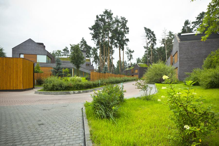 Территория коттеджного поселка не такая большая, как у соседних. Девять домовладений с особняками площадью от девяти сотен квадратных метров, разместились на больших земельных участках с гостевыми постройками и гаражами. Вся территория поселка охраняется и окружена забором, дома соединены удобными дорогами с основной, ведущей к шоссе.